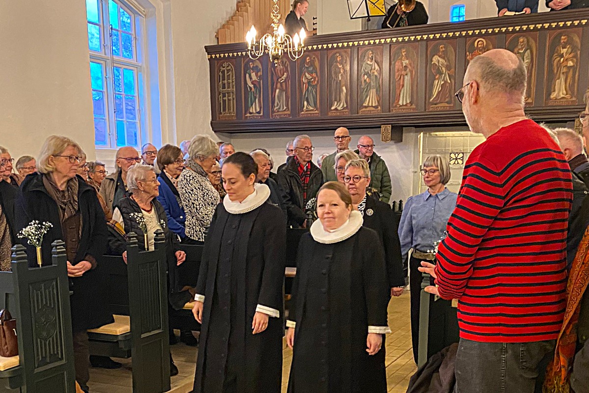 Kirken blev åbnet efter renoveringen med en gudstjeneste, hvor sognepræsterne Sussi Maria Nørregaard Kristensen og Ellen Marie Jermiin Nielsen, gik i spidsen for en procession af menighedsrådsmedlemmer ind i kirken.