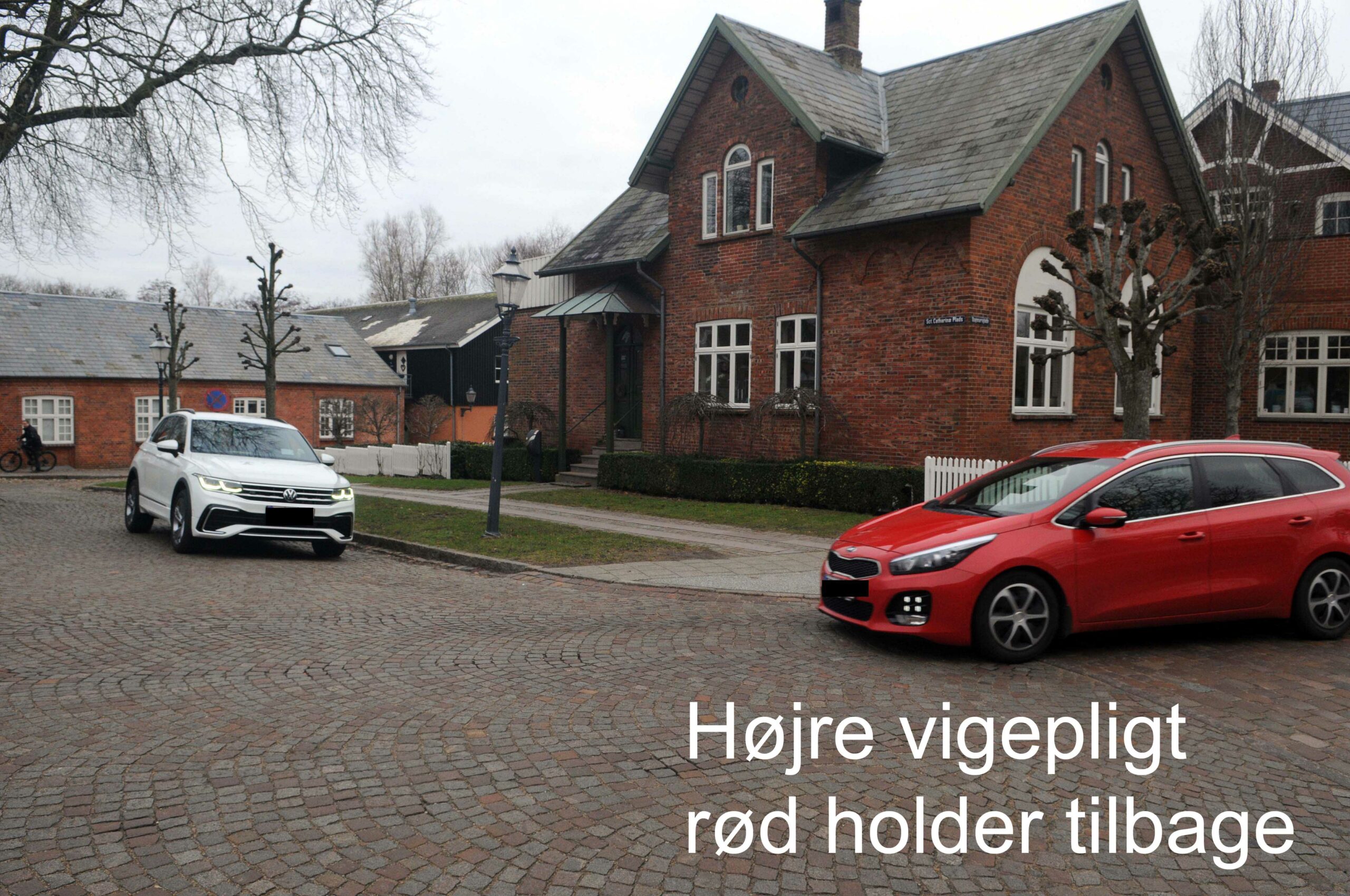 Men den unge bilist kender reglerne – og den er god nok. Der er højre vigepligt, og det lærer man selvfølgelig ved køreskolen. Det har alle lært. Men bliver det brugt – populært sagt, er nok mere tvivlsomt.