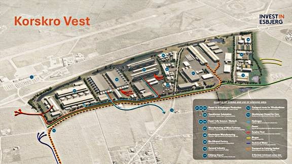 Illustration: Oversigt over området ved Korskro Vest med potentielle industrier indtegnet.