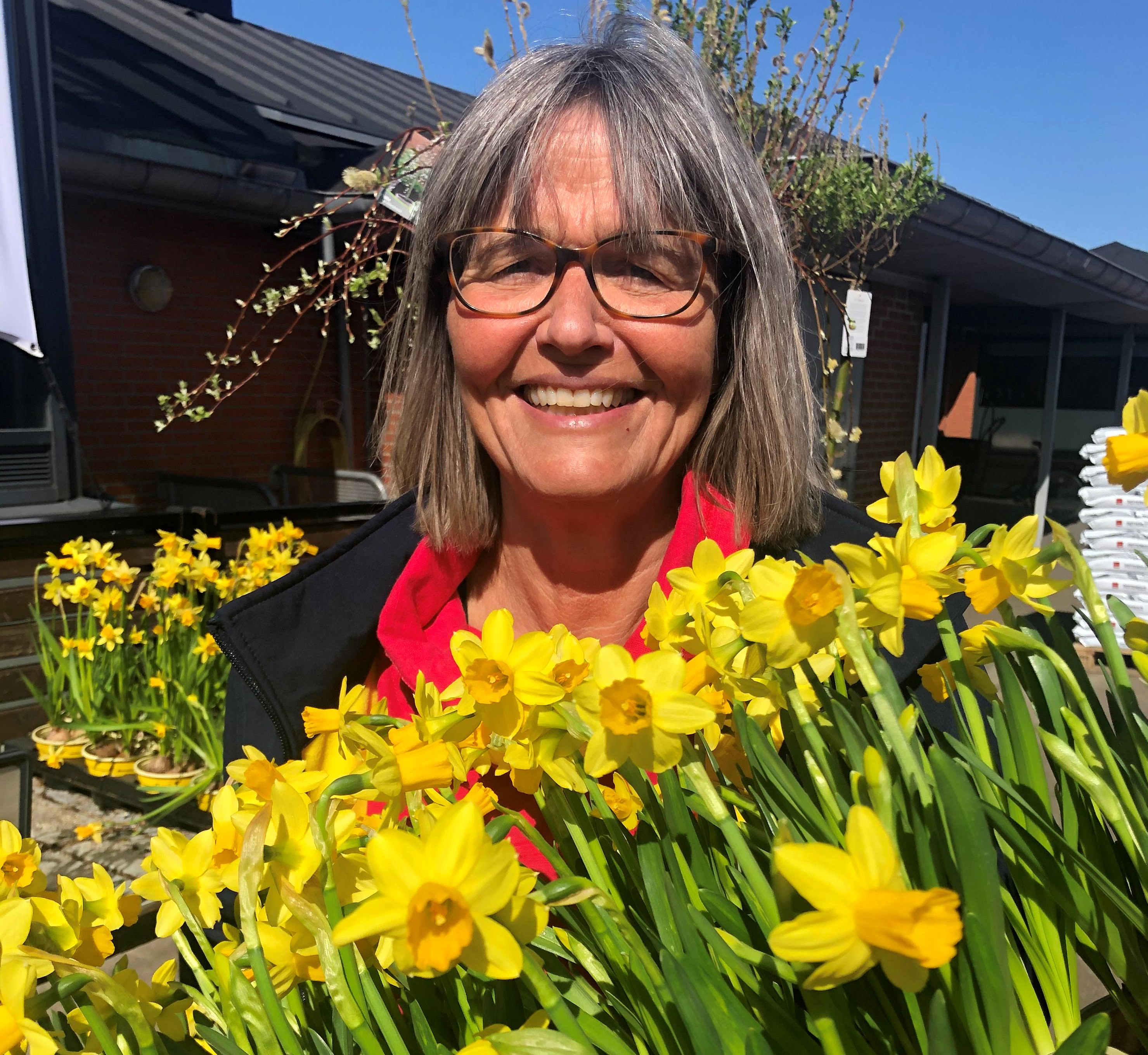 – Vi ville gerne have haft tulipaner, og jeg ringede ud til ejeren af tulipanmarkerne, hvor Tulipanfesten får blomster fra. Det er lige nøjagtigt fem dage for tidligt at plukke dem. Men påskeliljer er også dejlige i denne tid, slutter Lise Frederiksen.