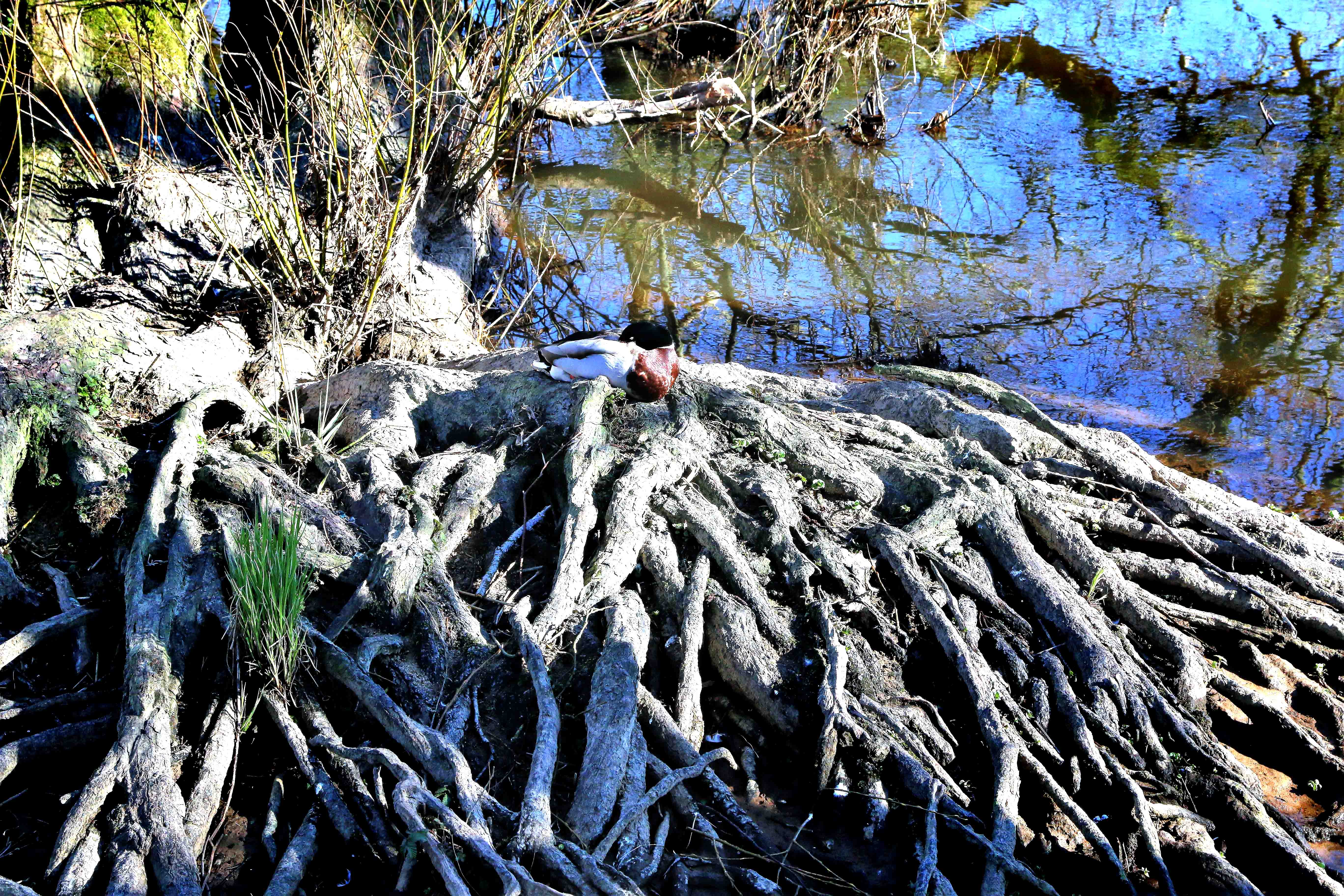 Kun få ænder var til stede på Andeøen – her nyder en andrik solen på et imponerende rodnet – i en forfærdelig larm fra…