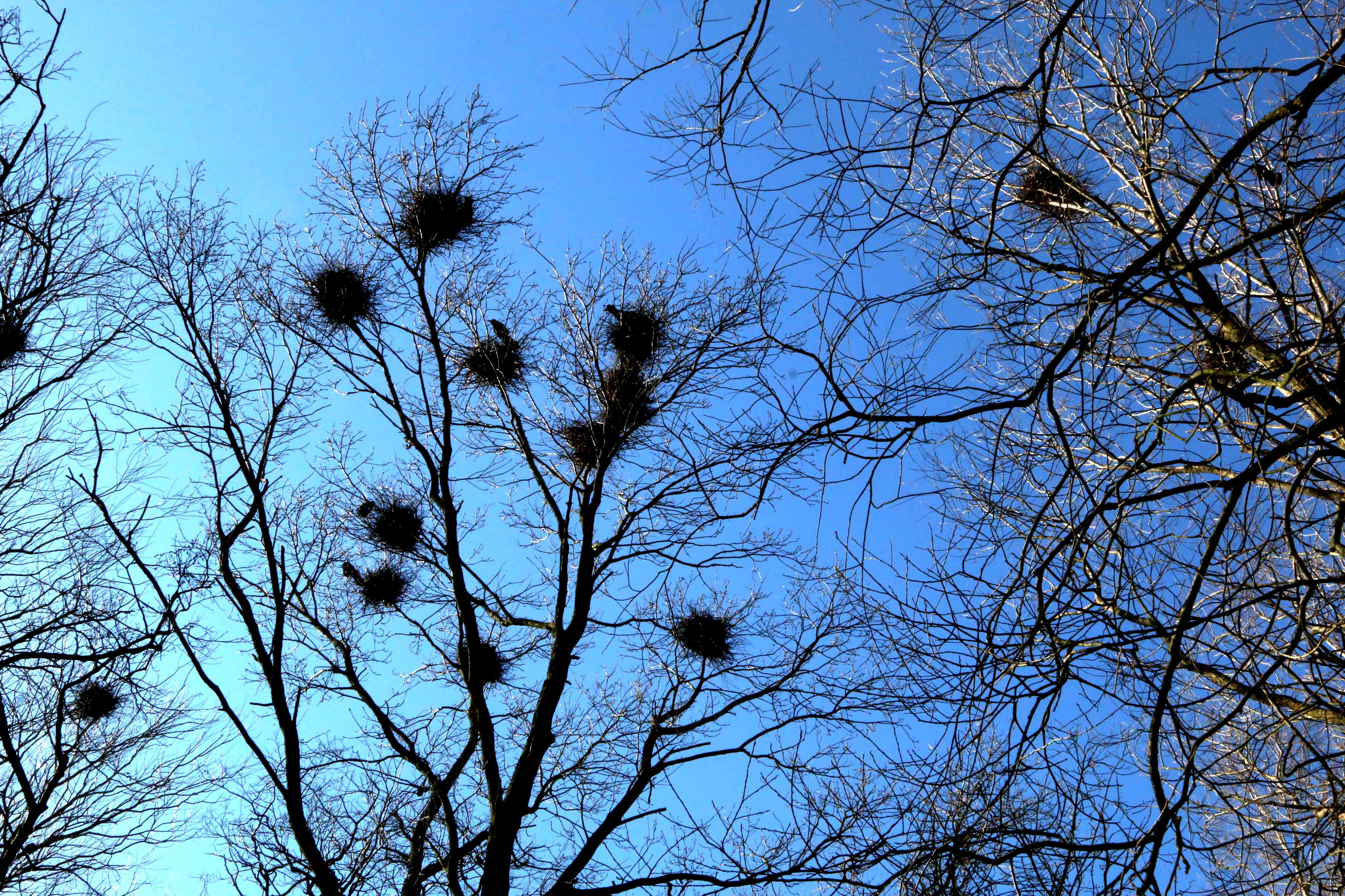 men onsdag eftermiddag var der ingen – og antallet af ænder var også ret begrænset. Til gengæld var der gang i trætoppene med en larmende rågekoloni, som samtidig har svinet området til.