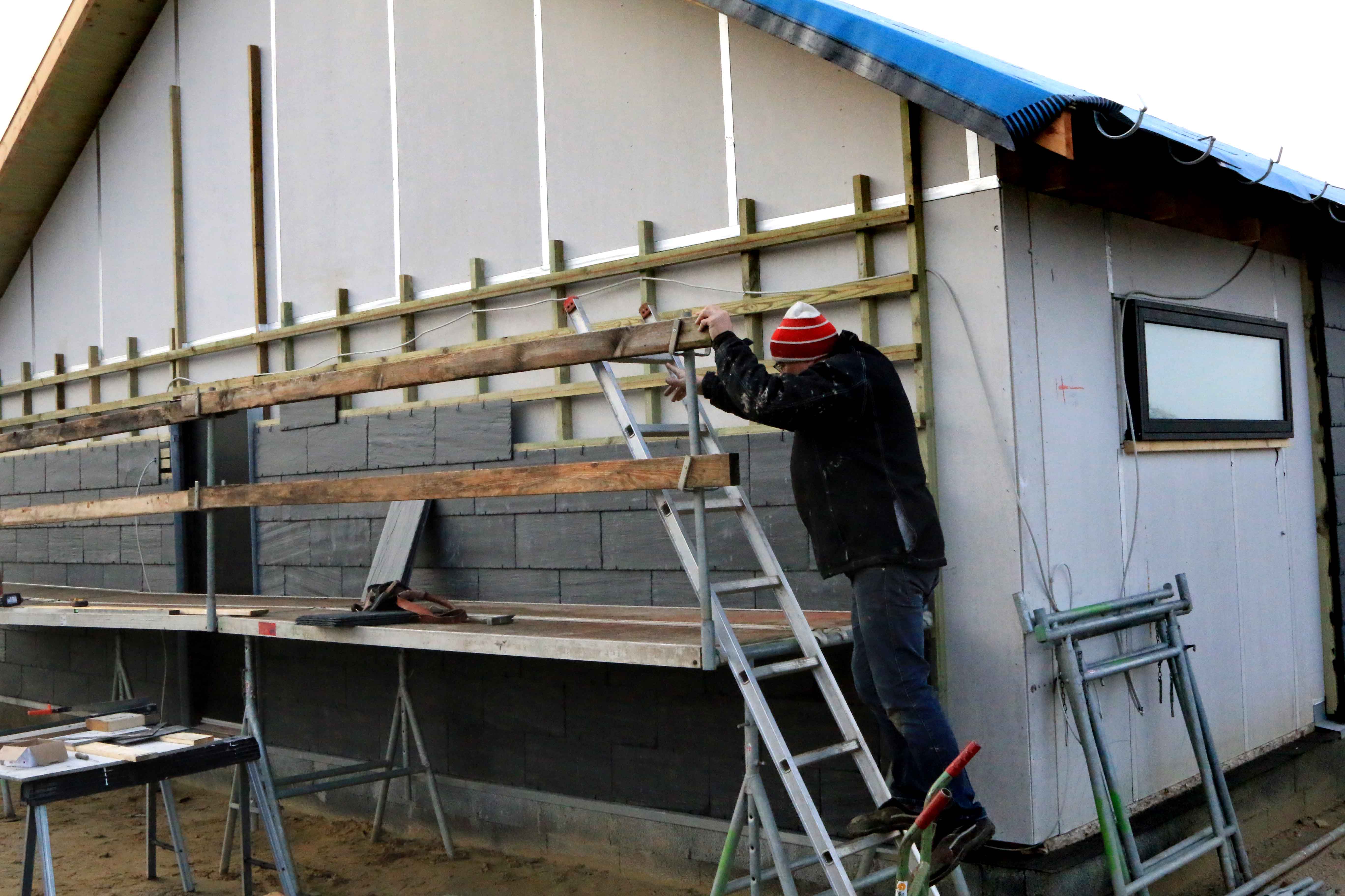 Arbejdet med at beklæde ydervæggene går godt