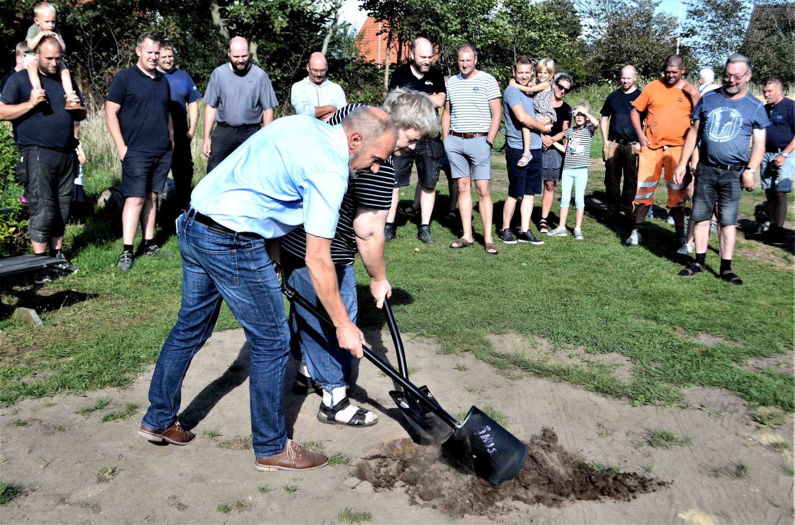 Byrådsmedlem Kurt Bjerrum (V) og Inge Jørgensen fra Sportsforeningen kunne i fællesskab tage det første spadestik til det hus, der skulle afløse det gamle og utidssvarende klubhus. Det nye hus er på omkring 240 kvadratmeter, og ud over to moderne omklædningsrum indeholder dert et mødelokale til omkring 50 personer samt et lokale til lokalhistorisk arkiv.