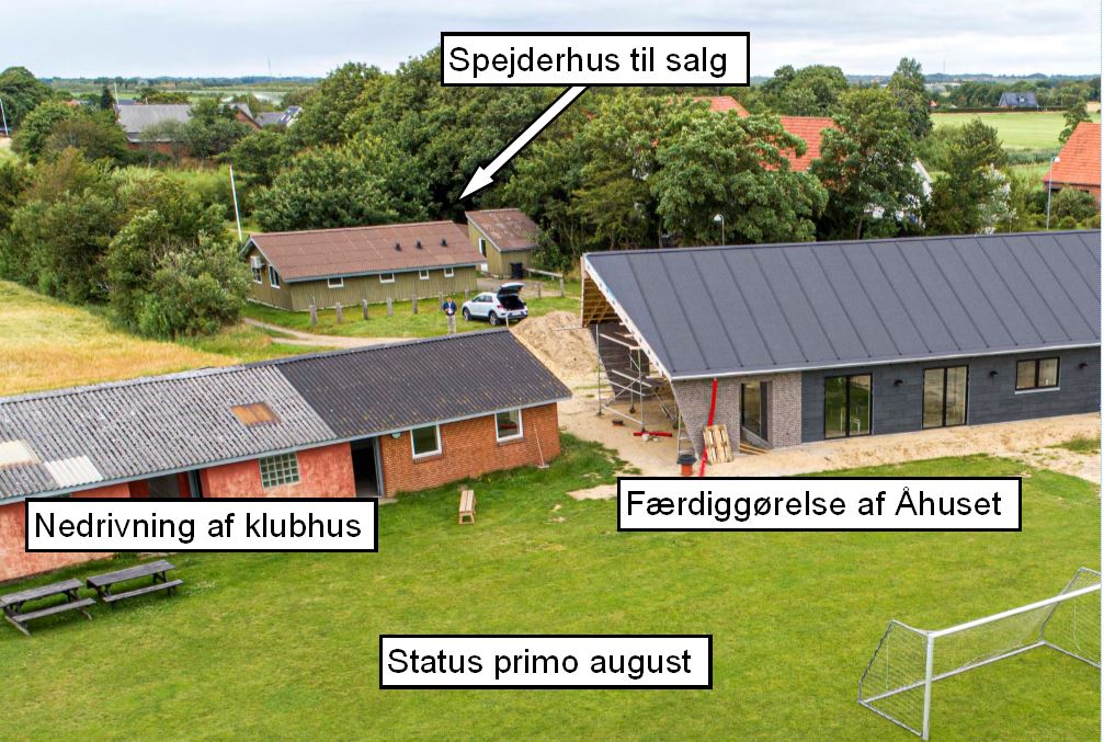 Arbejdet med at færdiggøre Åhuset i Kongeådal fortsætter, mens det det gamle og utidssvarende klubhus måtte lade livet. Spejderhuset blev solgt og transporteret til Jedsted.