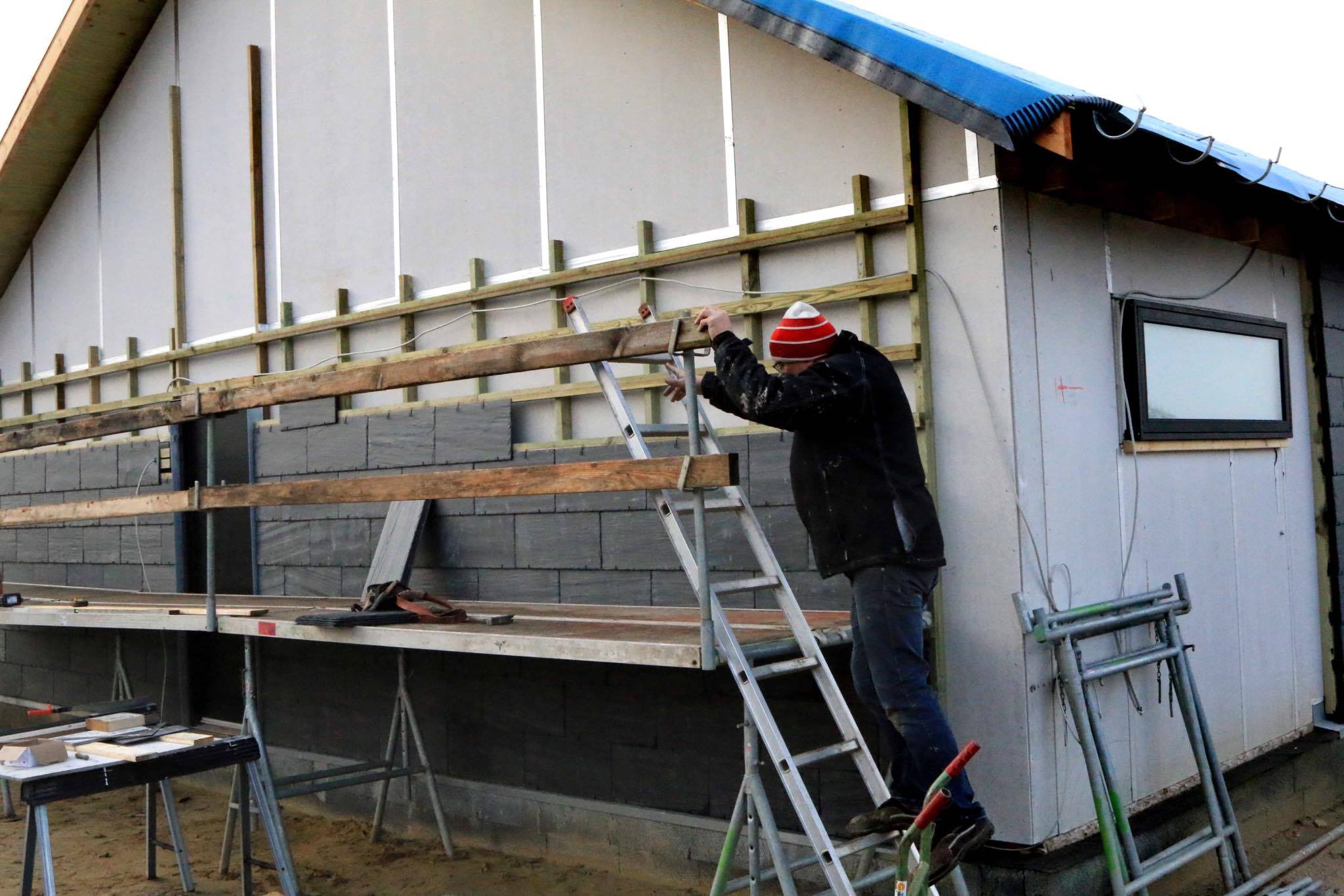 Det gik hurtigere med at fabrikere spær og vægge end først antaget. Og lige “pludselig” en dag, så var huset ydre rammer på plads.