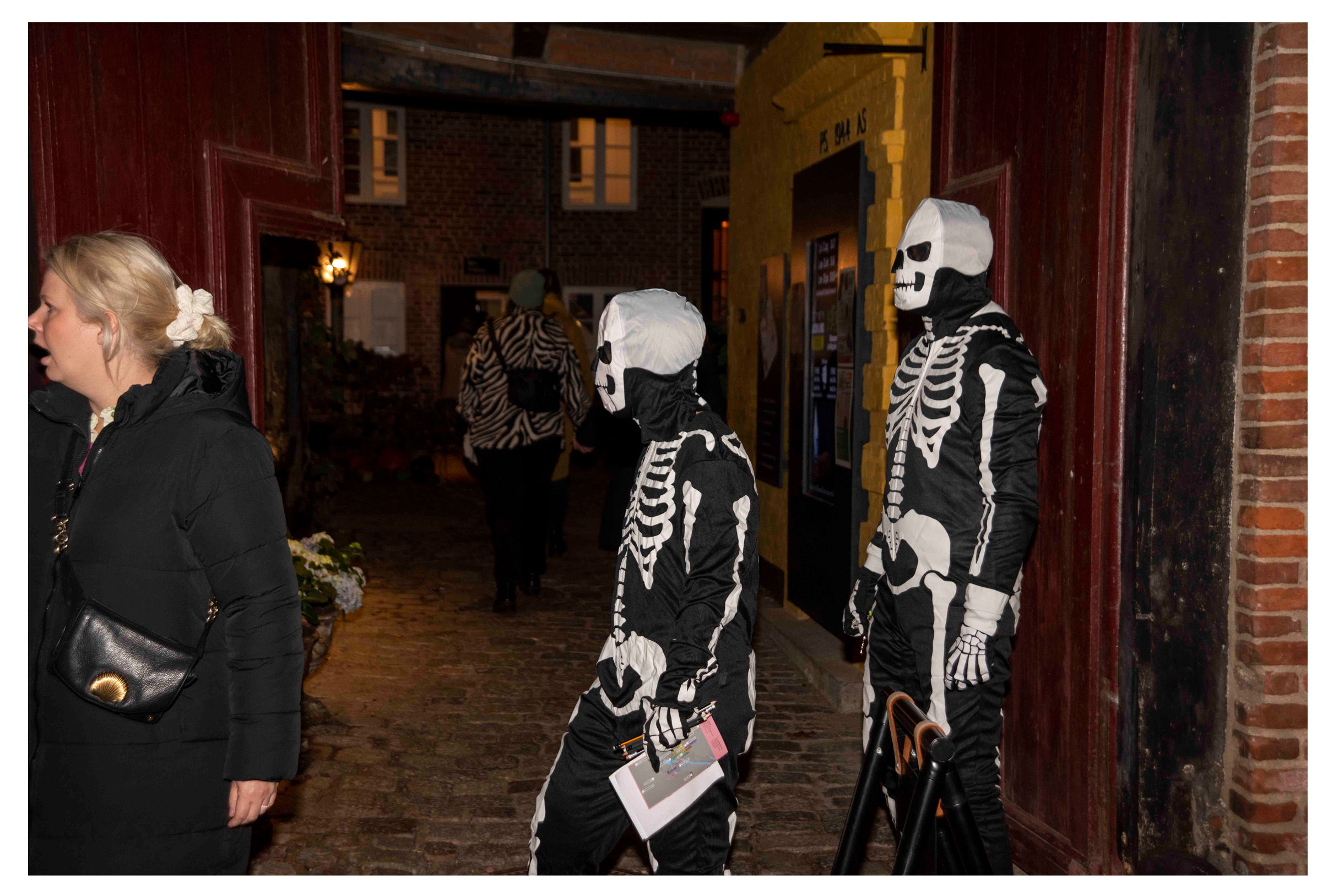 Nå, men i jagten på skeletterne, lykkedes det mig at finde dem i Sortebrødregade. Lidt grinende fortalte de to skeletter, at det ikke var sedler om valget de uddelte, men derimod en god reklame for museet HEX.