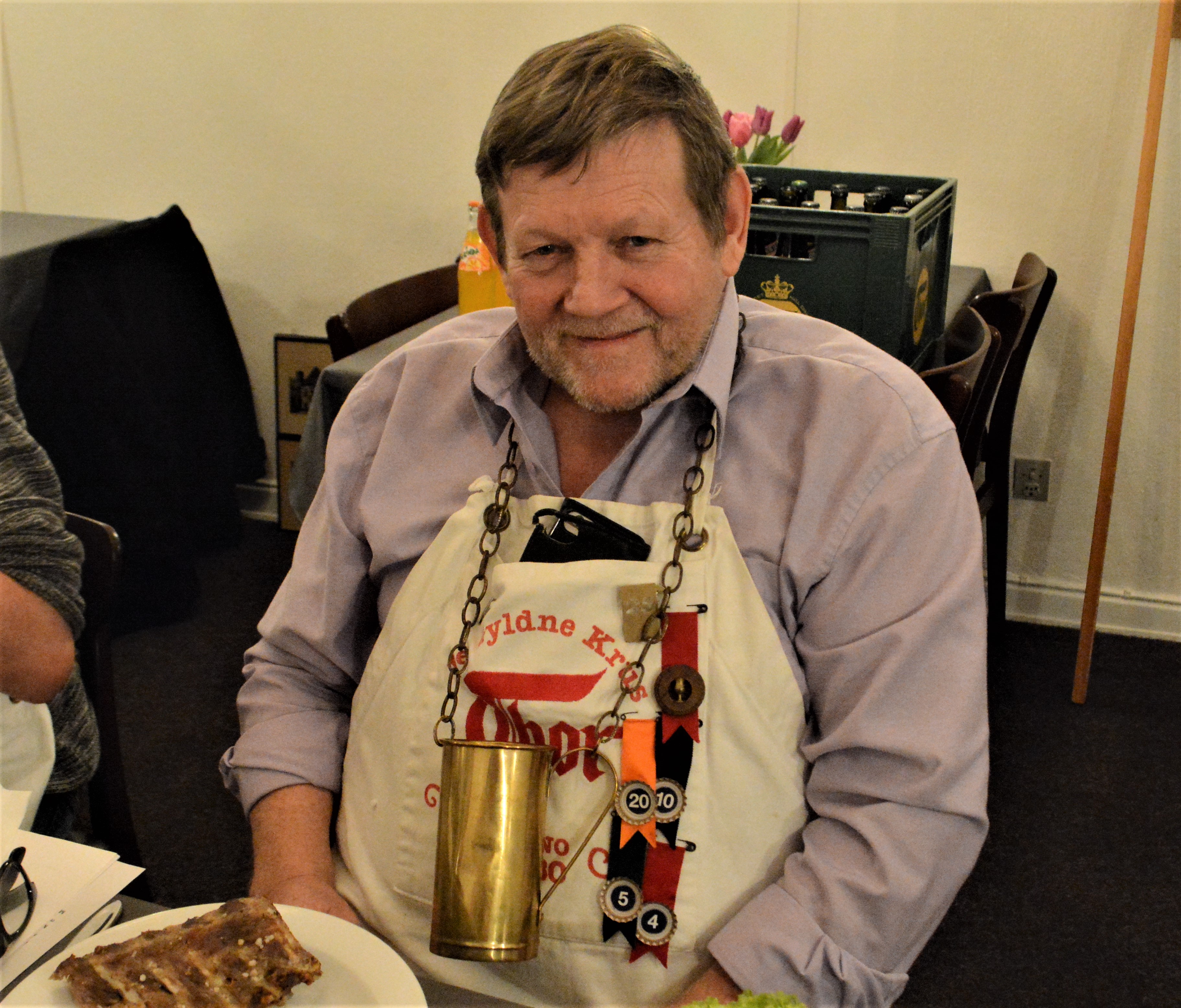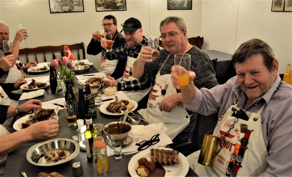 Sådan kom den agtværdige forening Det gyldne Krus til live for 40 år siden. Foreningen har netop været samlet til møde på Backhaus, hvor møderne har været holdt de sidste mange år, og formanden, Jan Gandrup, kan forsikre, at medlemmerne med hensyn til indtagelse af fast og flydende føde er blevet mere civiliserede end ved starten. Nu spises der af tallerkener med kniv og gaffel, og de afgnavede ben placeres på de dertil fremsatte fade.