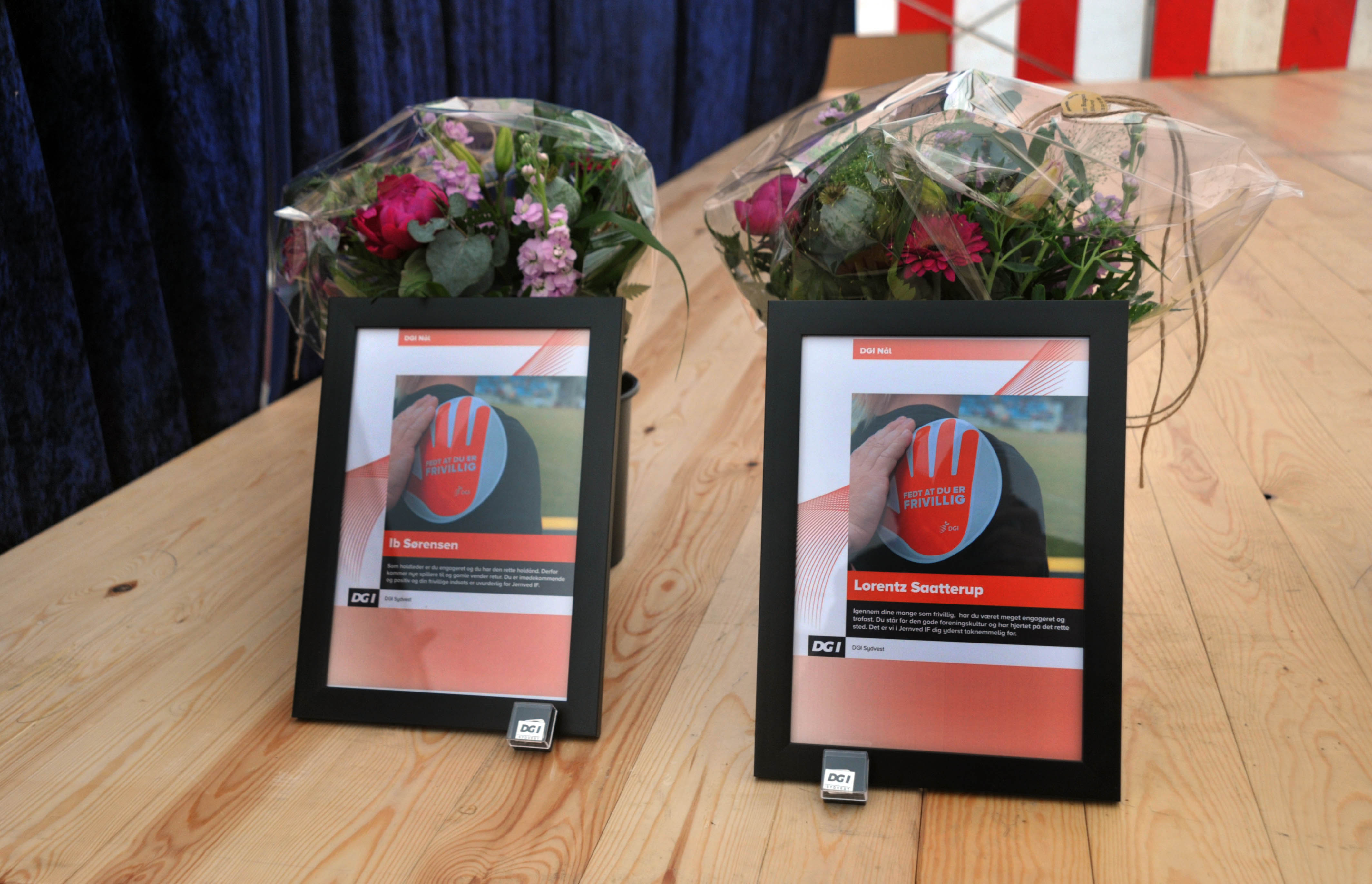 Ib Sørensen og Lorentz Saatterup måtte som så mange andre borgere op på Jernved Stadion. Byen holdt jo byfest, men hvad de ikke vidste var, at Carsten Lund fra klubben havde sendt en ansøgning til DGI med en indstilling om, at de to skulle modtage æresnålen.