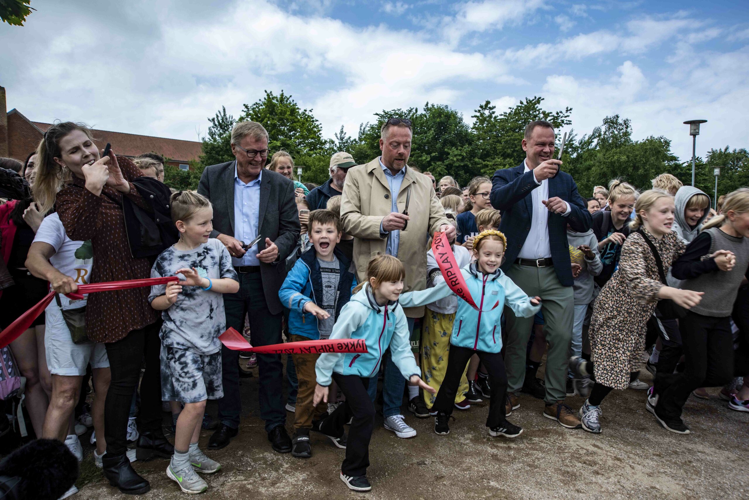 Sange, taler og flere hundrede børn og voksne markerede åbningen, og da sange og taler var overstået, blev den røde snor klippe af borgmester Jesper Frost Rasmussen, Vagn Sørensen og Peter Laursen. Sidstnævnte som idémager og Vagn Sørensen som en af de mange personer, der har knoklet for projektet.