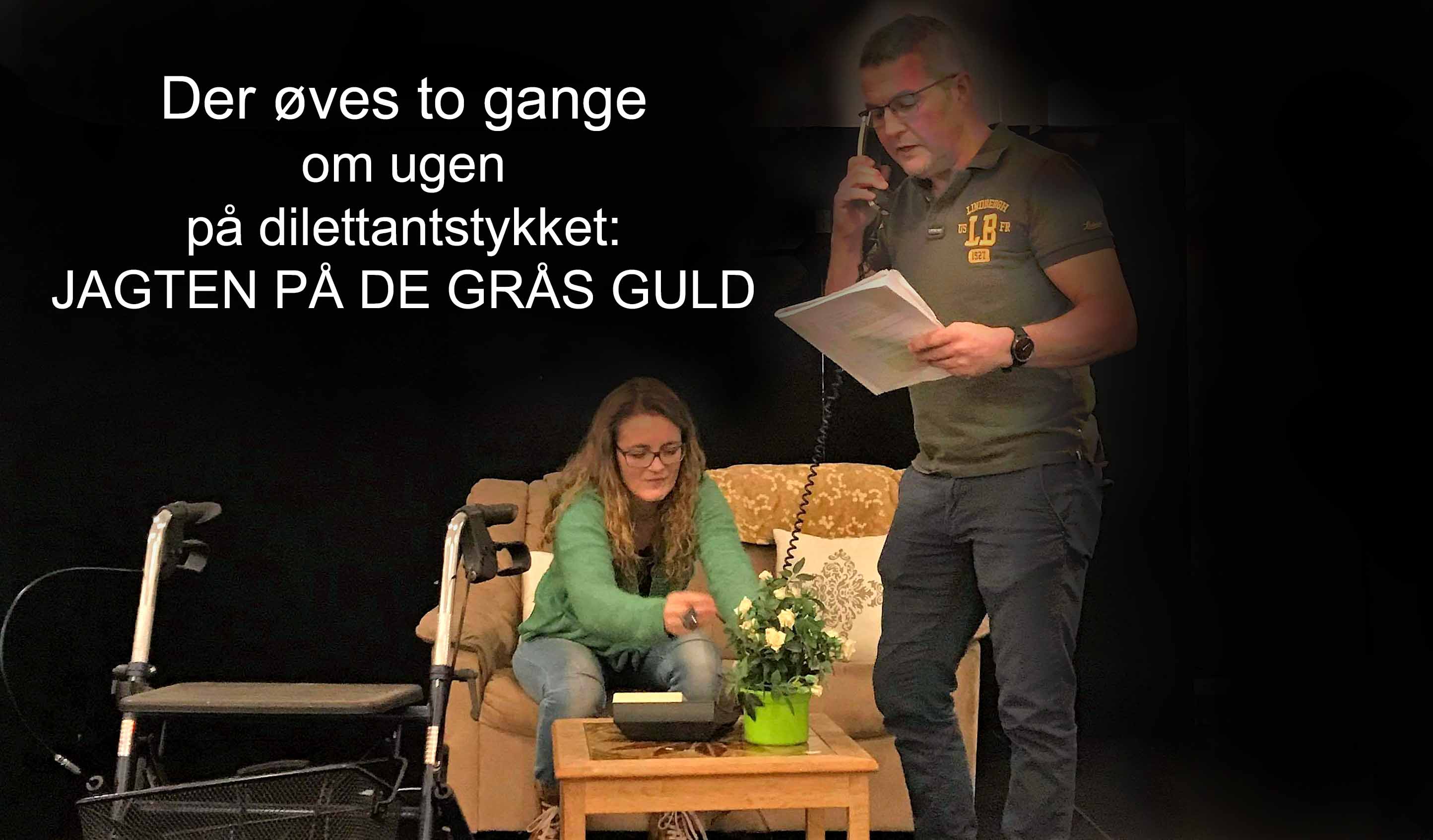 Selvom generalprøven først er torsdag d. 5. marts kl. 19:00 i Roager Medborgerhus, så øver de 8 skuespillere allerede to gange om ugen – torsdag og søndag. ”Det er nu ikke, fordi jeg er den bedste, at jeg har hovedrollen”, siger Aksel med et glimt i øjet og tilføjer: ”Men jeg er pokkers god til at huske alle replikkerne.”