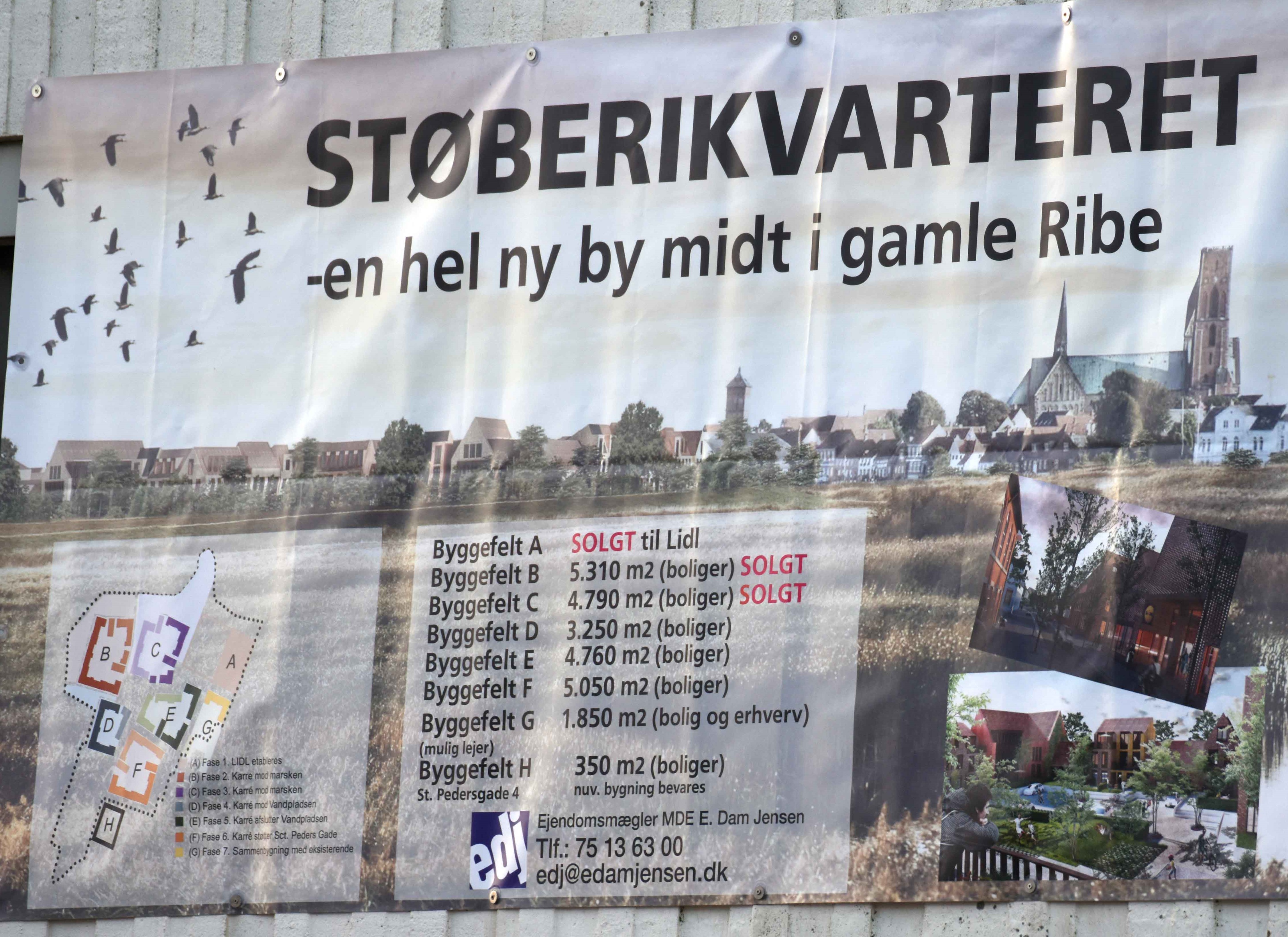 Området er opdelt i otte byggefelter, og af dem er de tre allerede solgt. Lidl har som bekendt sat sig på et og er i gang med at opføre et supermarked ud mod Saltgade i det nord østlige hjørne af hele området, mens Ribe Boligforening har sat sig på to byggefelter på sammenlagt omkring 11.000 kvadratmeter, hvor der skal opføres omkring 120 boliger.