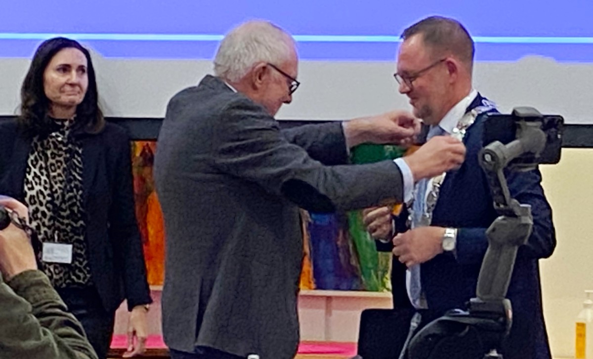 Hans Erik Møller ledede starten på mødet som det ældst siddende byrådsmedlem, nemlig i 36 år, og han overrakte derefter borgmesterkæden til Jesper Frost Rasmussen som symbol på udnævnelsen.