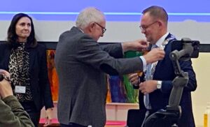 By Hasse|december 1st, 2025|Kommentarer lukket til Hans Erik Møller hænger borgmesterkæden om Jesper Frost Rasmussen mens kommunaldirektør Rikke Vestergaard ser til.