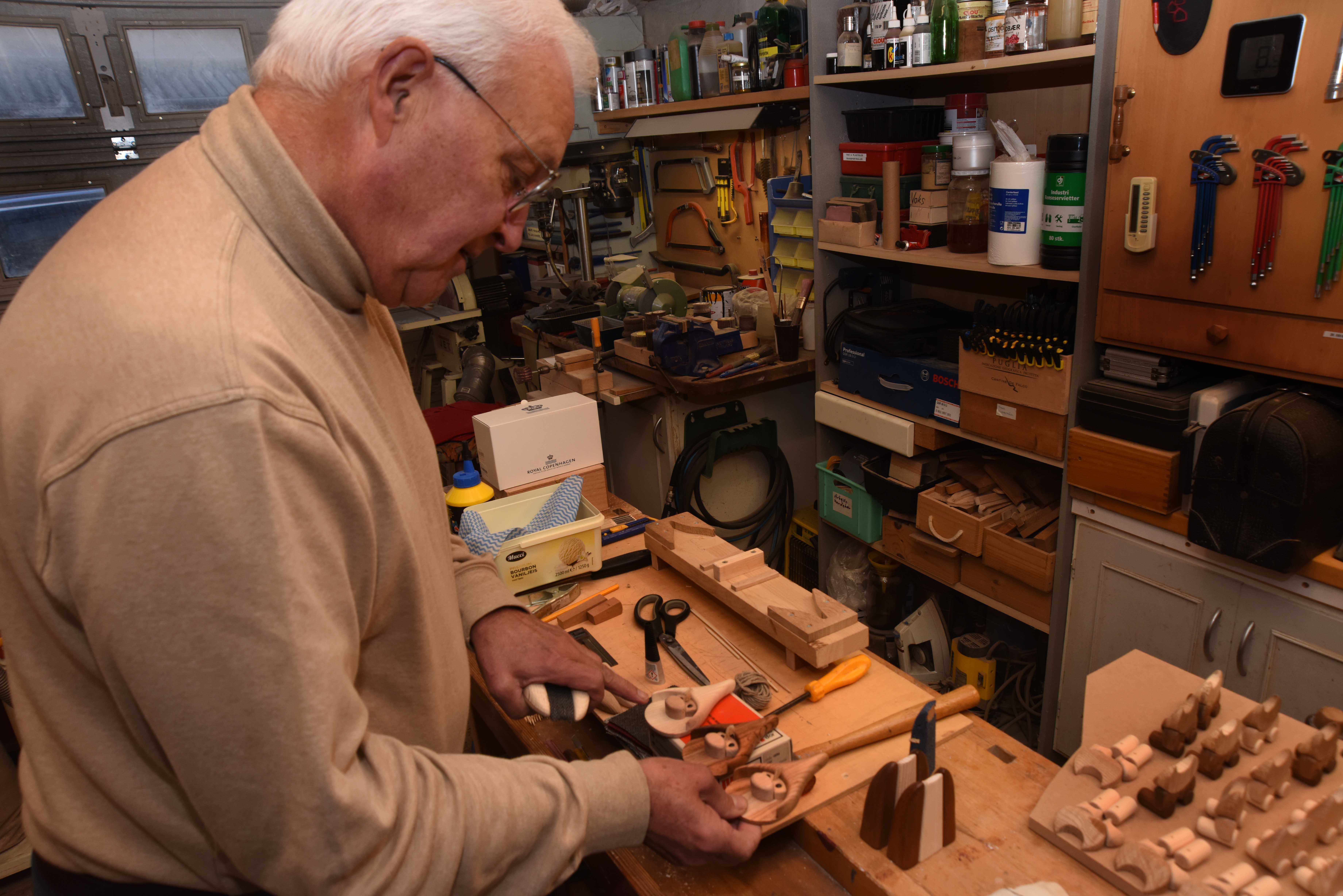 – Det var min afdøde kone Tove, som under opholdet i Tyskland syntes, at jeg skulle bruge min kreative side inden for form- og fremstillingsteknologien. Træarbejdet har altid ligget til familien – det stammer fra min morfar som var møbelsnedker.
