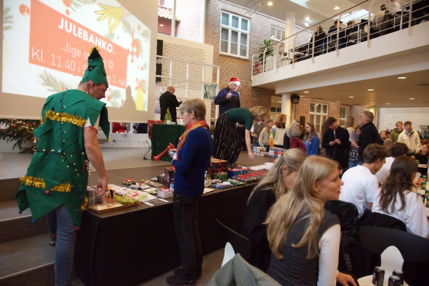 Arrangementet samlede hele skolen og gav eleverne mulighed for at opleve lærere og rektor i mere uformelle og humoristiske roller end til daglig. Den uformelle tone skabte en glad og afslappet stemning, som dannede rammen om det alvorlige indslag: klassisk banko med flotte præmier projiceret op på storskærm.