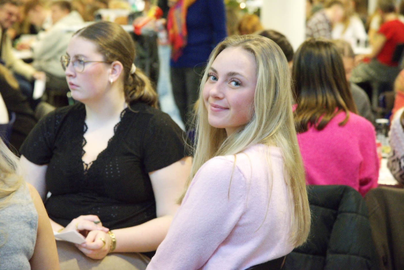 Der var slik, sodavand og hygge ved bordene, hvor klasserne sad samlet gruppevis sammen med deres lærere. Deres opgave var at ”båtte”, når der var fuld plade, og efter en naturligt rolig start tog båtteriet hurtigt fart. Præmierne kunne på skift afhentes hos lærer Henning Brandt, der forsøgte at skabe orden i det muntre kaos – med godt held.