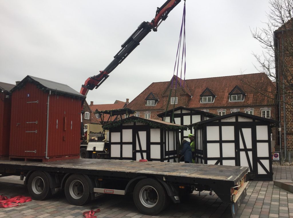 Juleudsmykningen er stort set op alle steder, og torsdag fik vognmandsfirmaet Leth julehytter på plads på Torvet, så de er klar, når julemanden vækkes. Det sker som vanlig fredag før første søndag i advent, og i år er det fredag den 29. december.