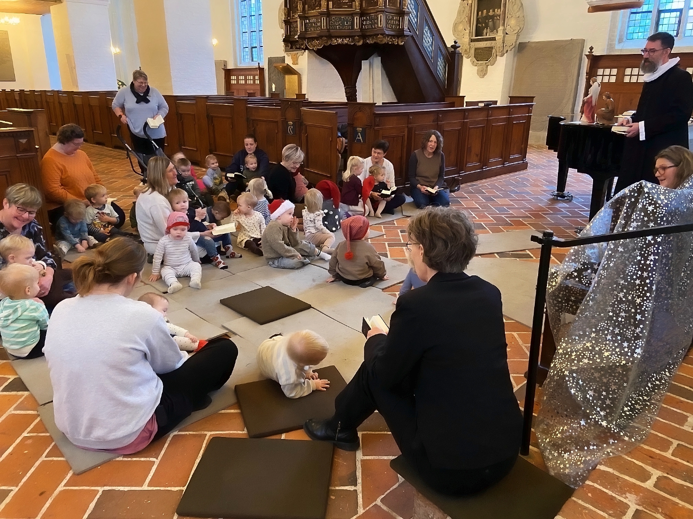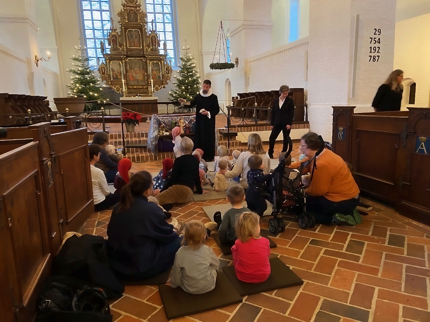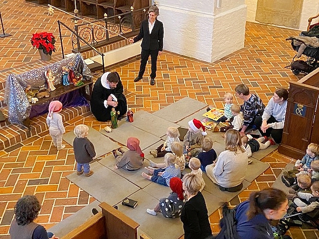 Det tog Sct. Catharinæ Kirke bogstaveligt fredag formiddag, hvor de åbnede dørene for det yngste segment. Her var De private pasningsordninger i Ribe inviteret til julegudstjeneste. Der var omkring 25 børn i alderen 1–3 år, og der blev gjort store øjne, da gudstjenesten gik i gang.