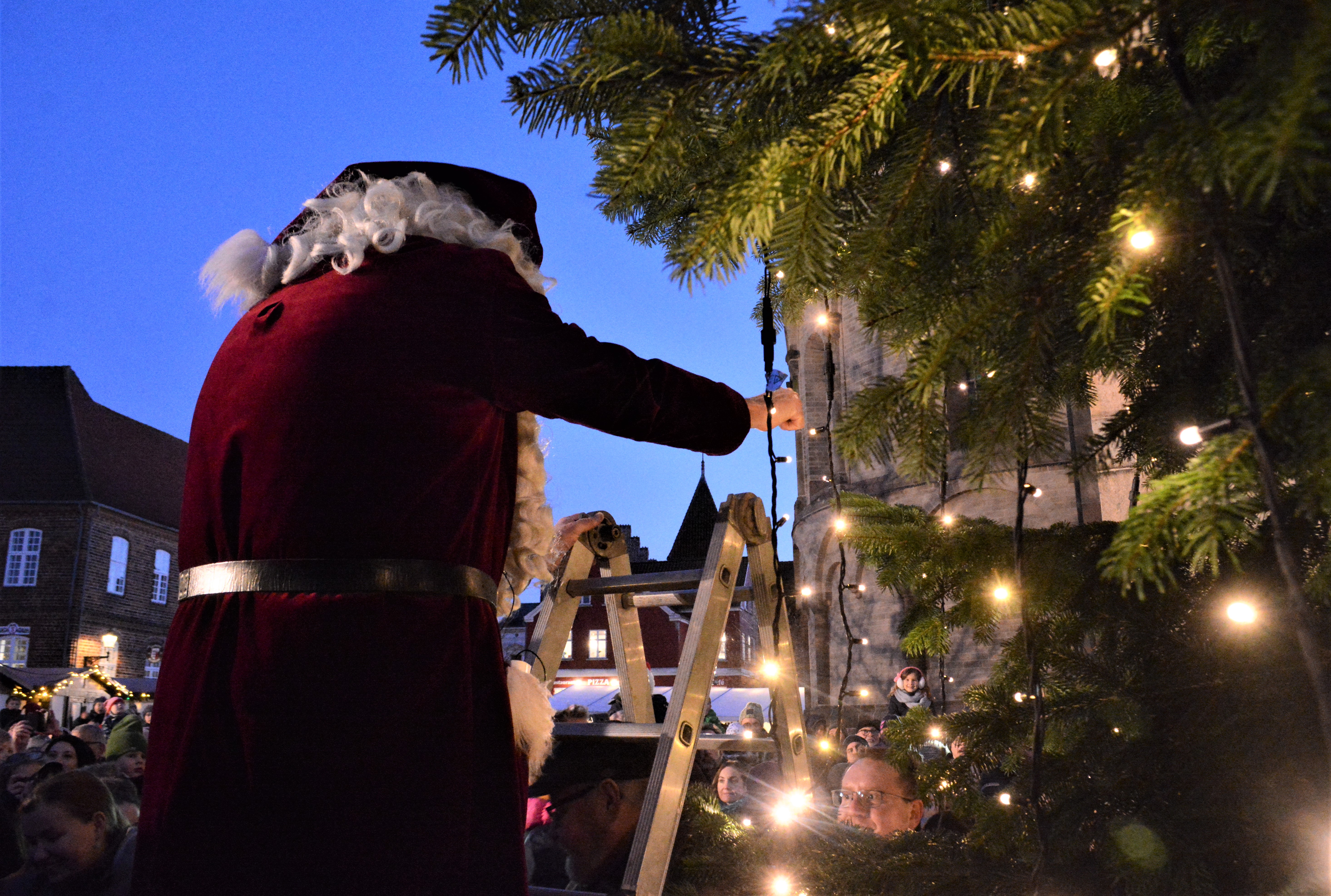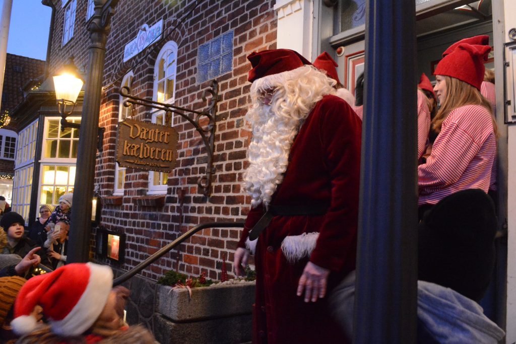 Men da der først kom liv i ham, kom han hurtigt ned af trapperne og ud på Torvet, så han – som det sig hør og bør – kunne tænde lysene på det store træ på Torvet.