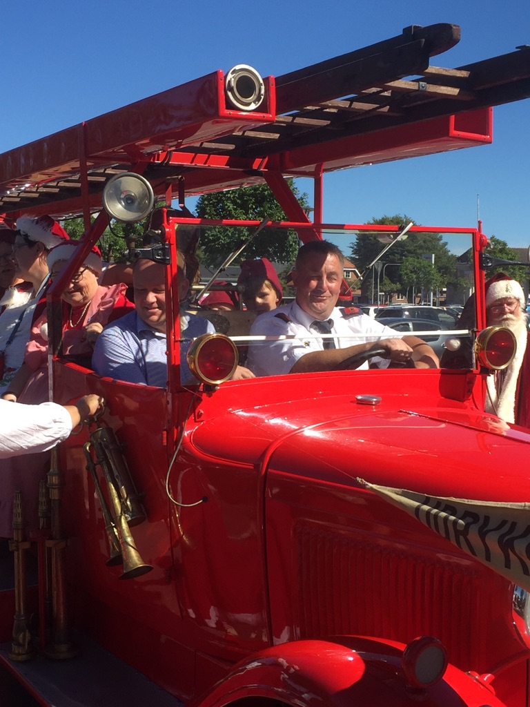 Ribe Brandmandsforening var også på pletten med den gamle Ford A, da julemændene var på spil, og både borgmester og julemænd blev kørt rundt i byen.