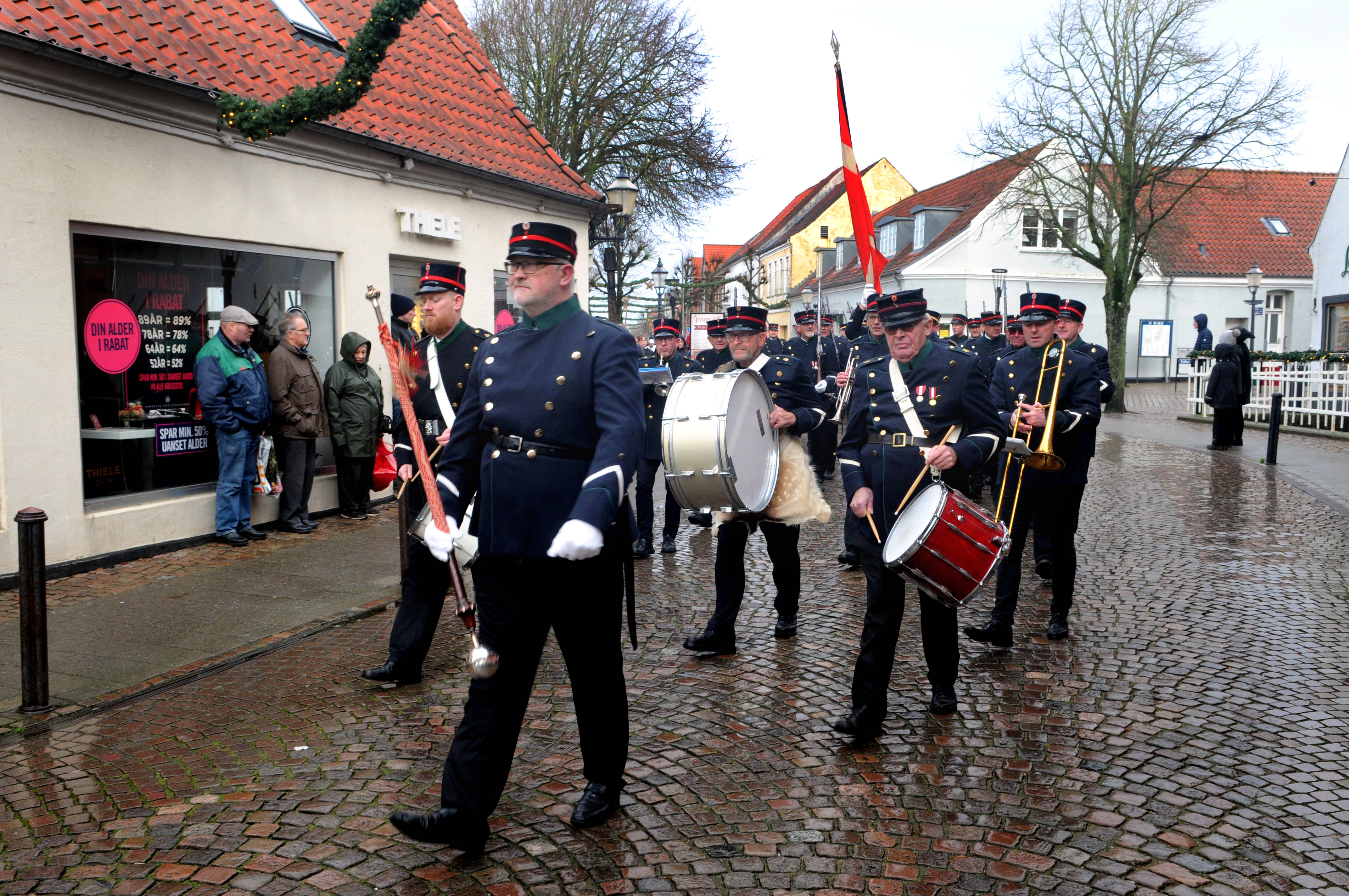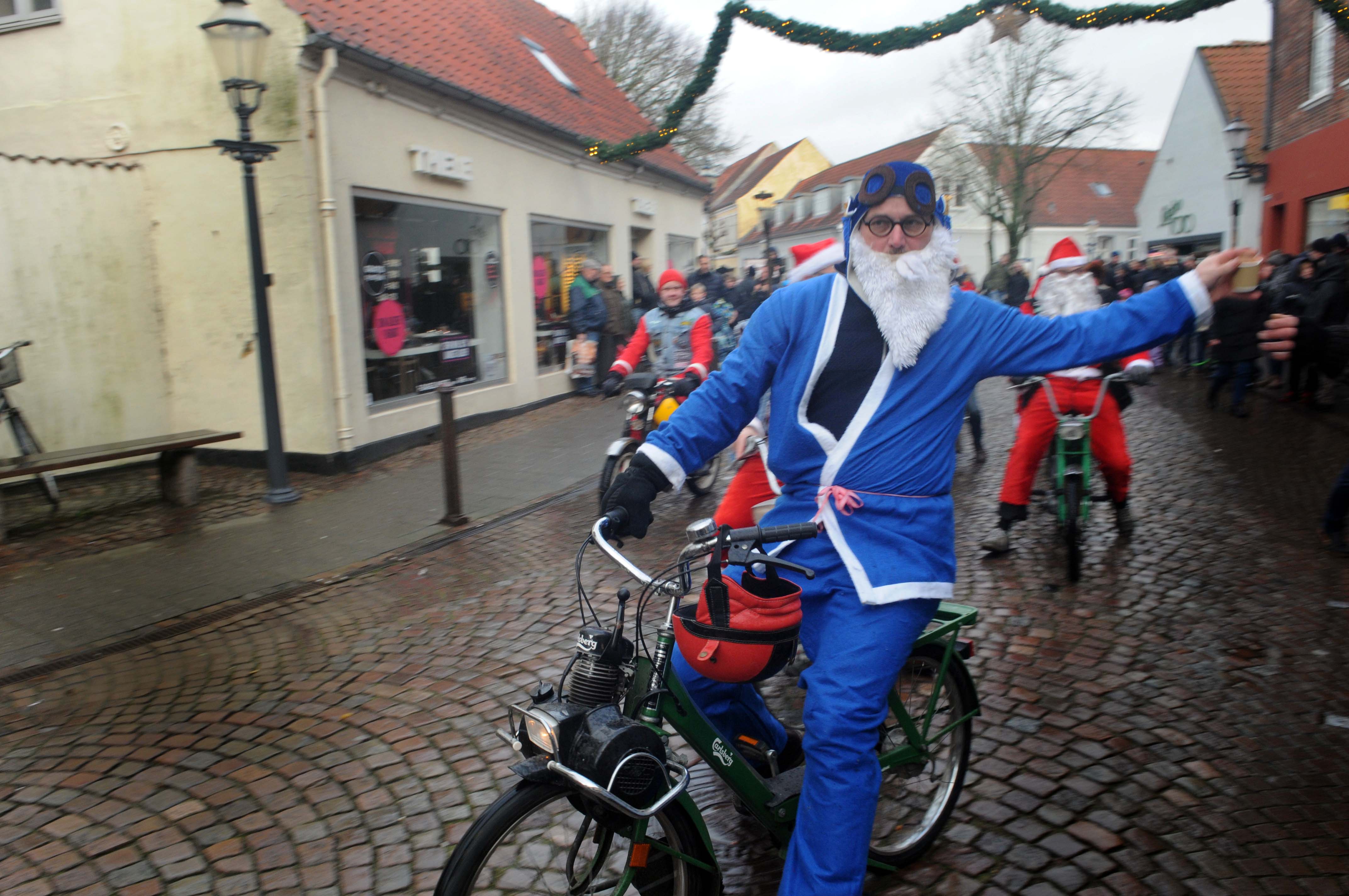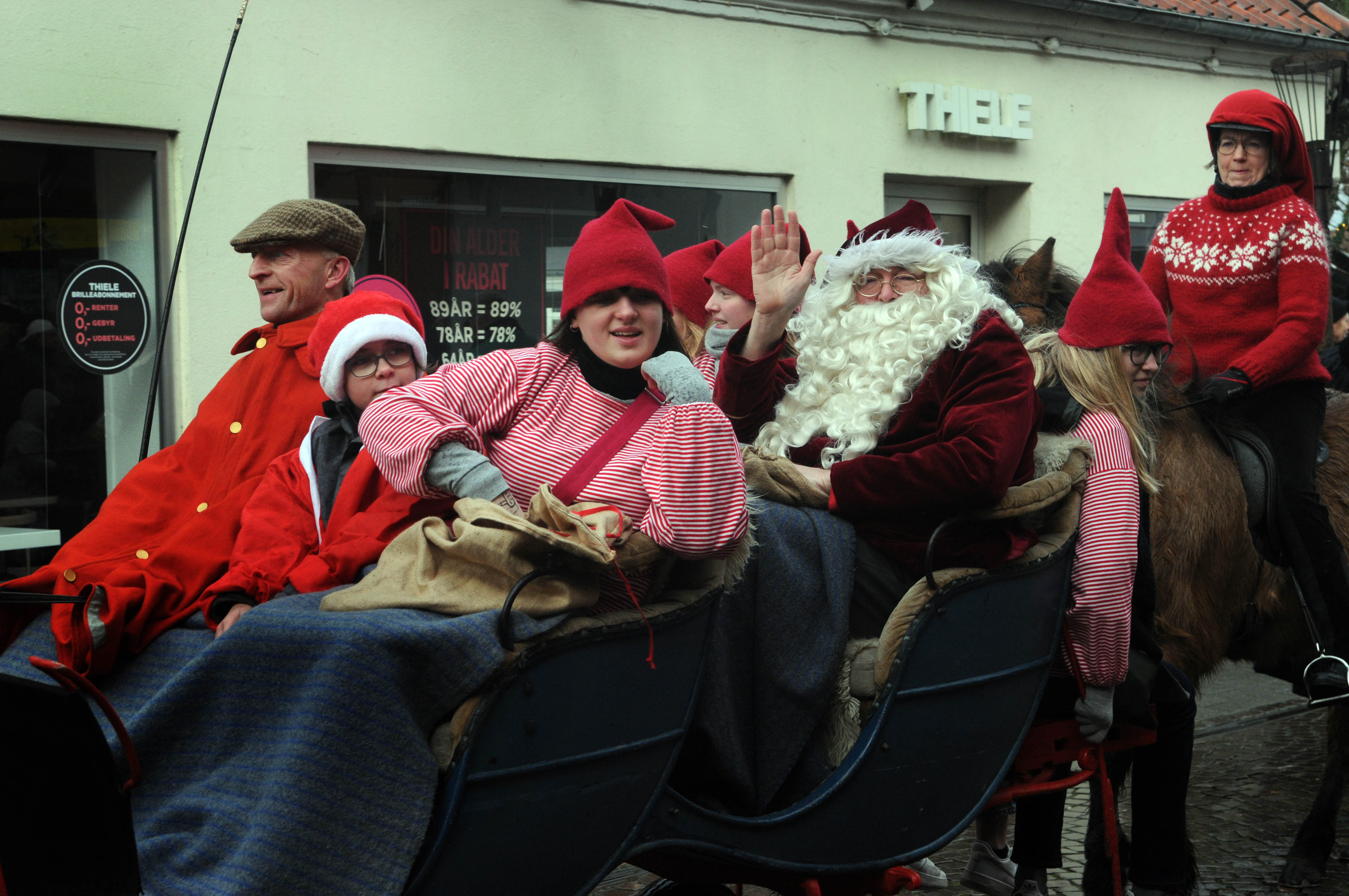 Mange skuttede sig i porte, under halvtag og markiser, når himlens sluser åbnede sig, mens politikorpset, veteranknallerter, ældre cykler, folkedansere, hestevogne, udsmykkede heste, den gamle brandbil og julemanden m. fl. gled forbi – akkompagneret af musiske indlæg med såvel trommer som messinginstrumenter.