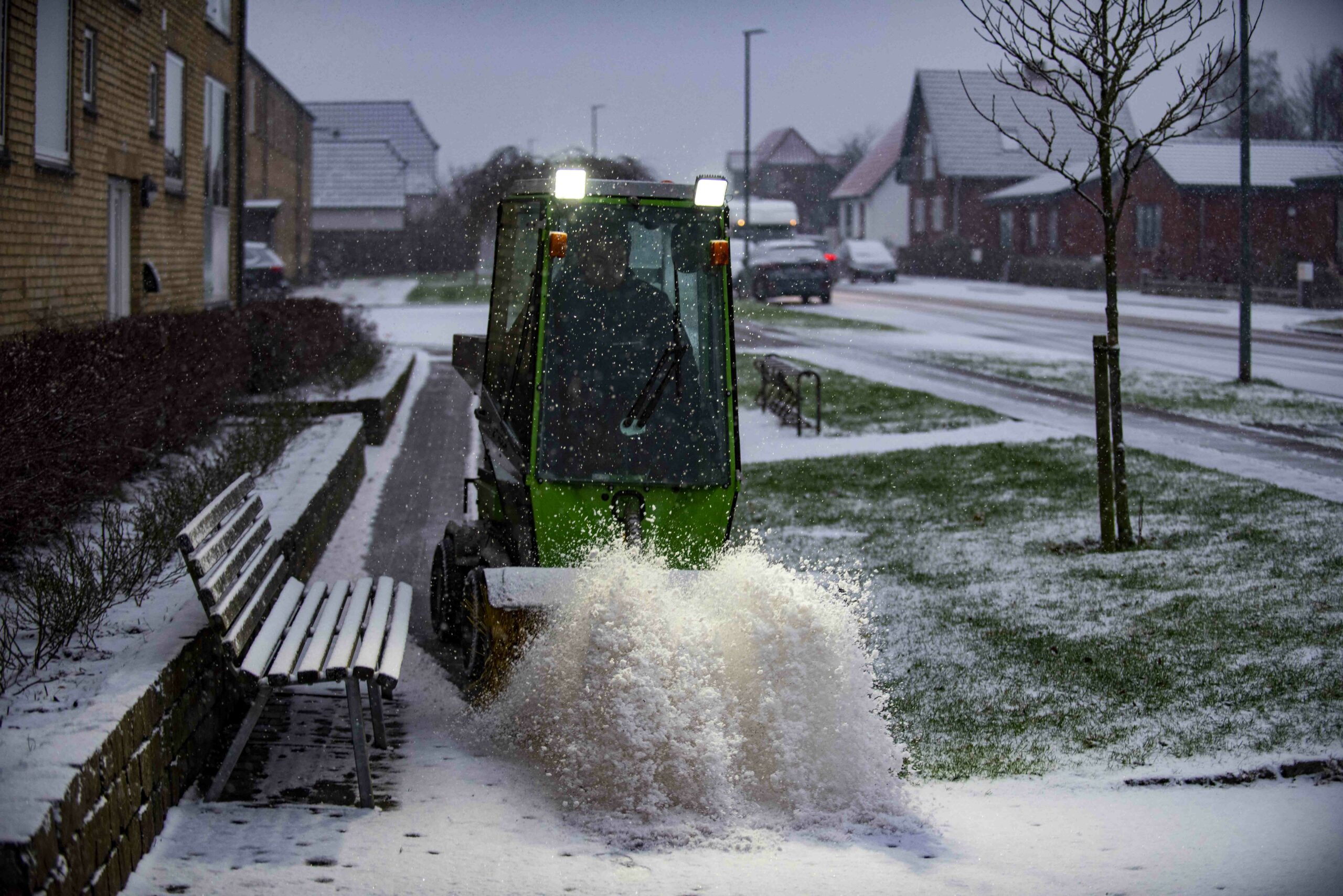 Men sne giver ekstra arbejde til andre. Byens entreprenører må afsted længe før, vi andre bare har tænkt på at stå op.