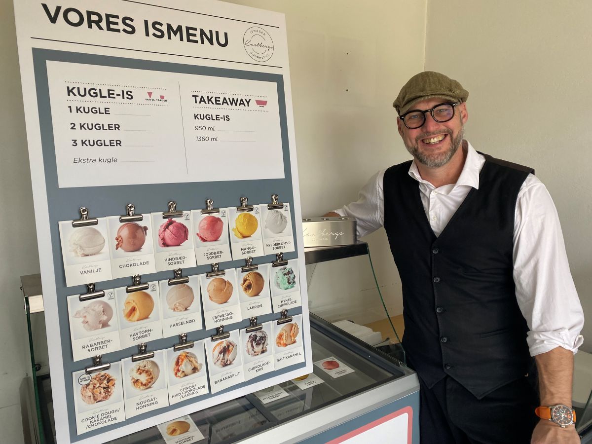 – Vi har valgt at starte med 18 forskellige, og det er kun i form af kugler, der serveres enten i bægre eller i vafler. Der er ikke ispinde, fortæller Niels Toft.