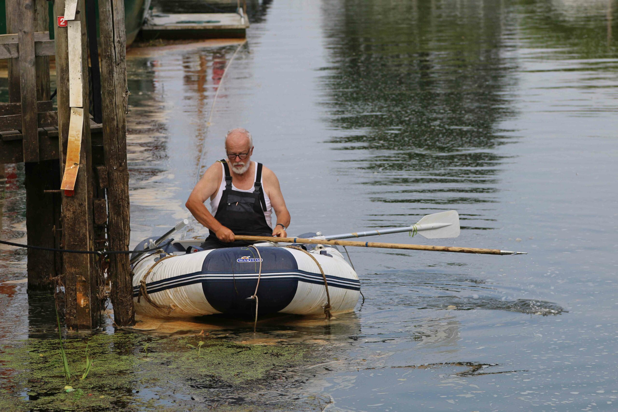 Gode råd var dyre – og derfor sejlede kaptajnen i sin gummibåd rundt og efterprøvede vanddybden – og der er faktisk masser af vand, bortset fra på sandbanken.