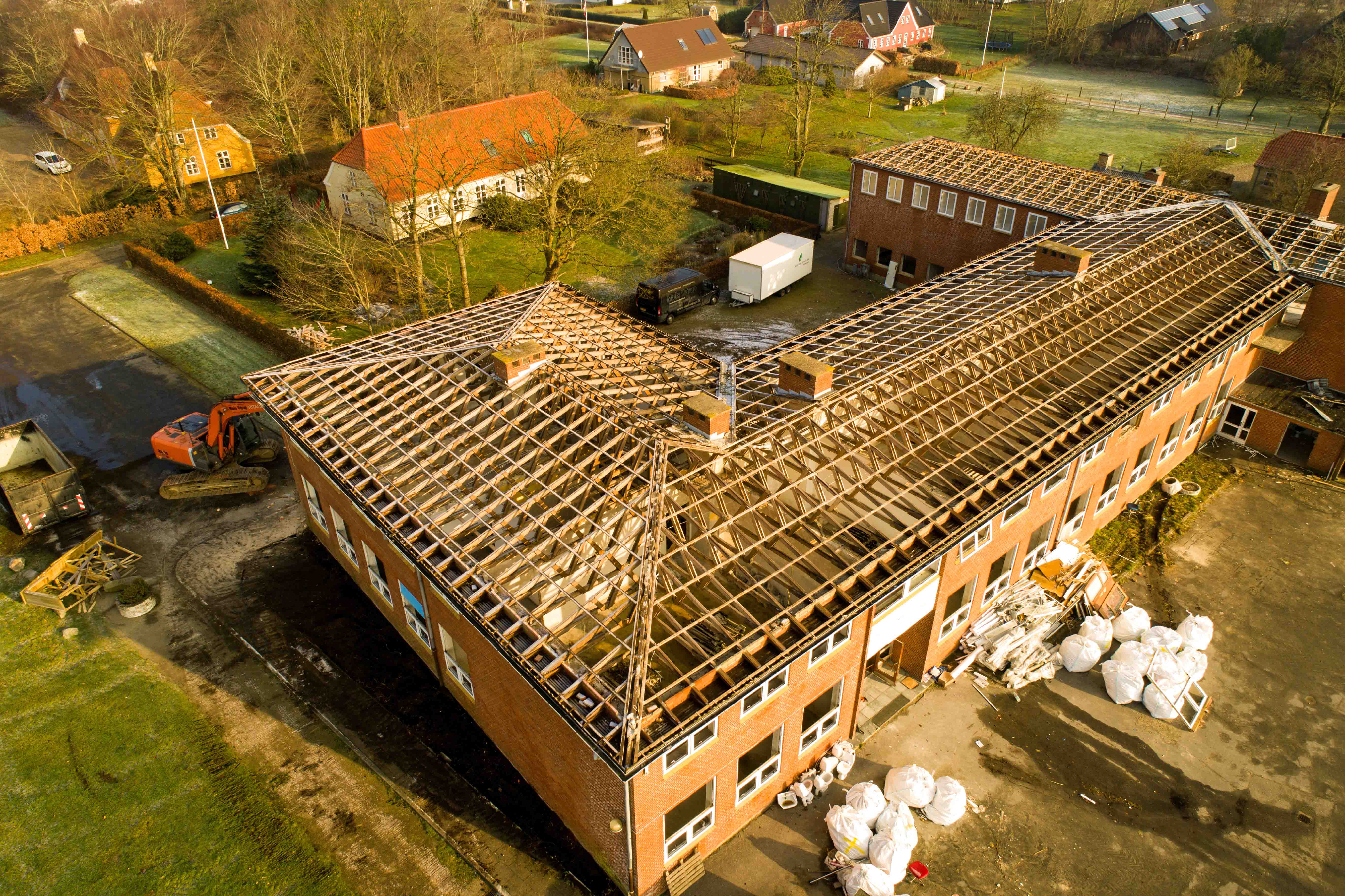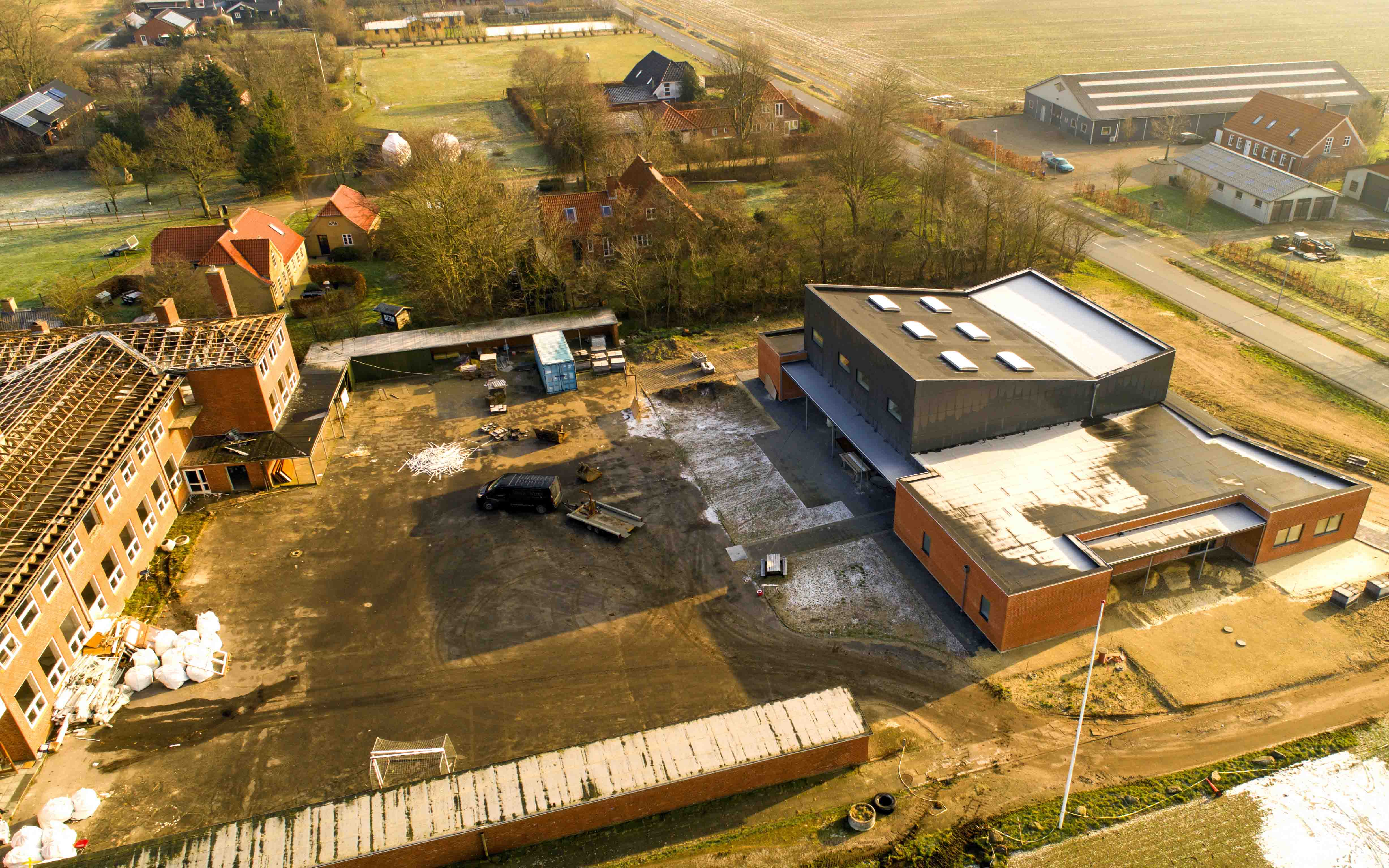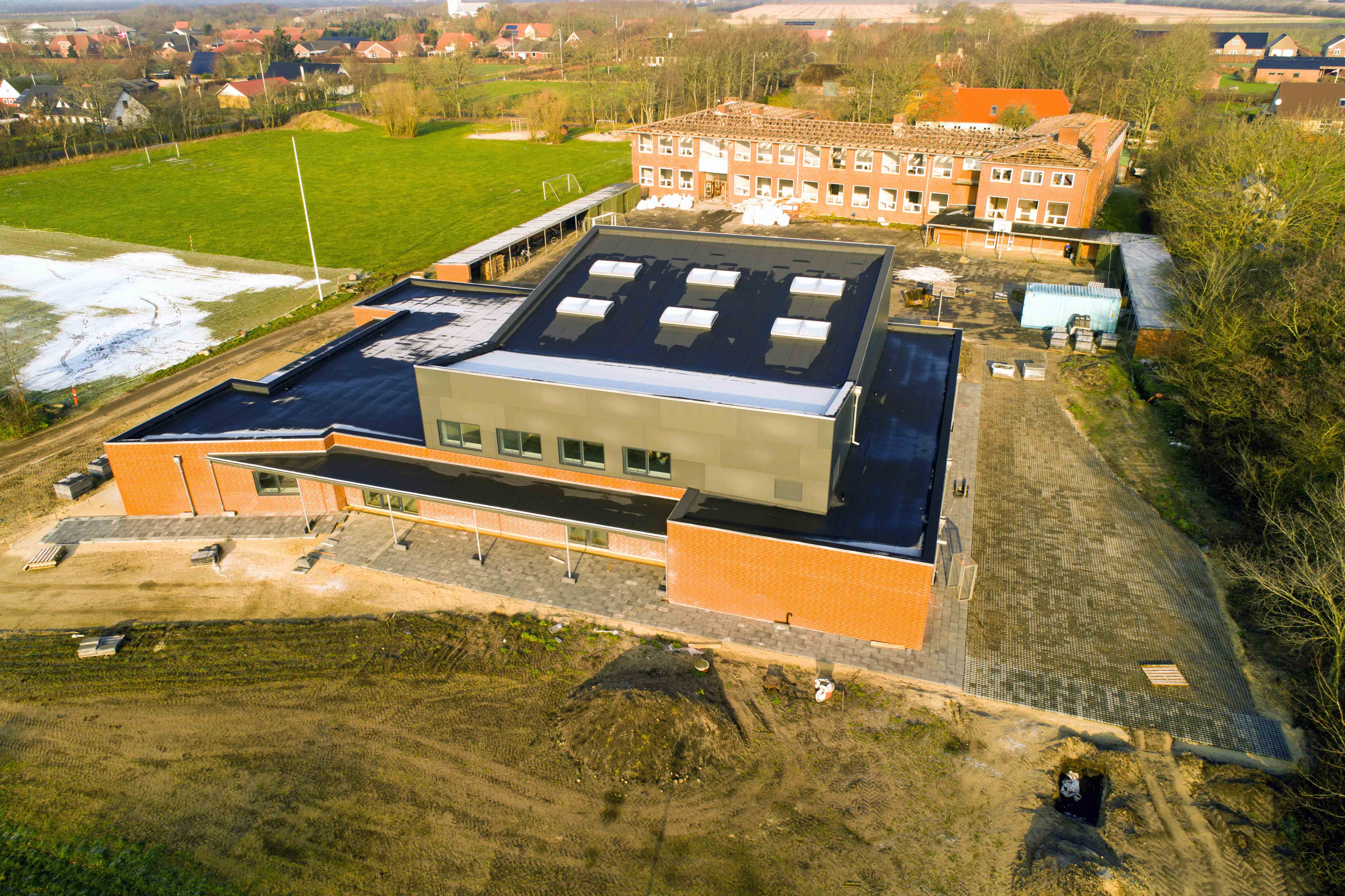 Når skolebygningerne er jævnet med jorden, skal der laves parkeringsplads til det nye Kultur- og Aktivitetshus. Som Oves flotte droneoptagelser viser, så er det en flot bygning, som skal samle byens borgere.