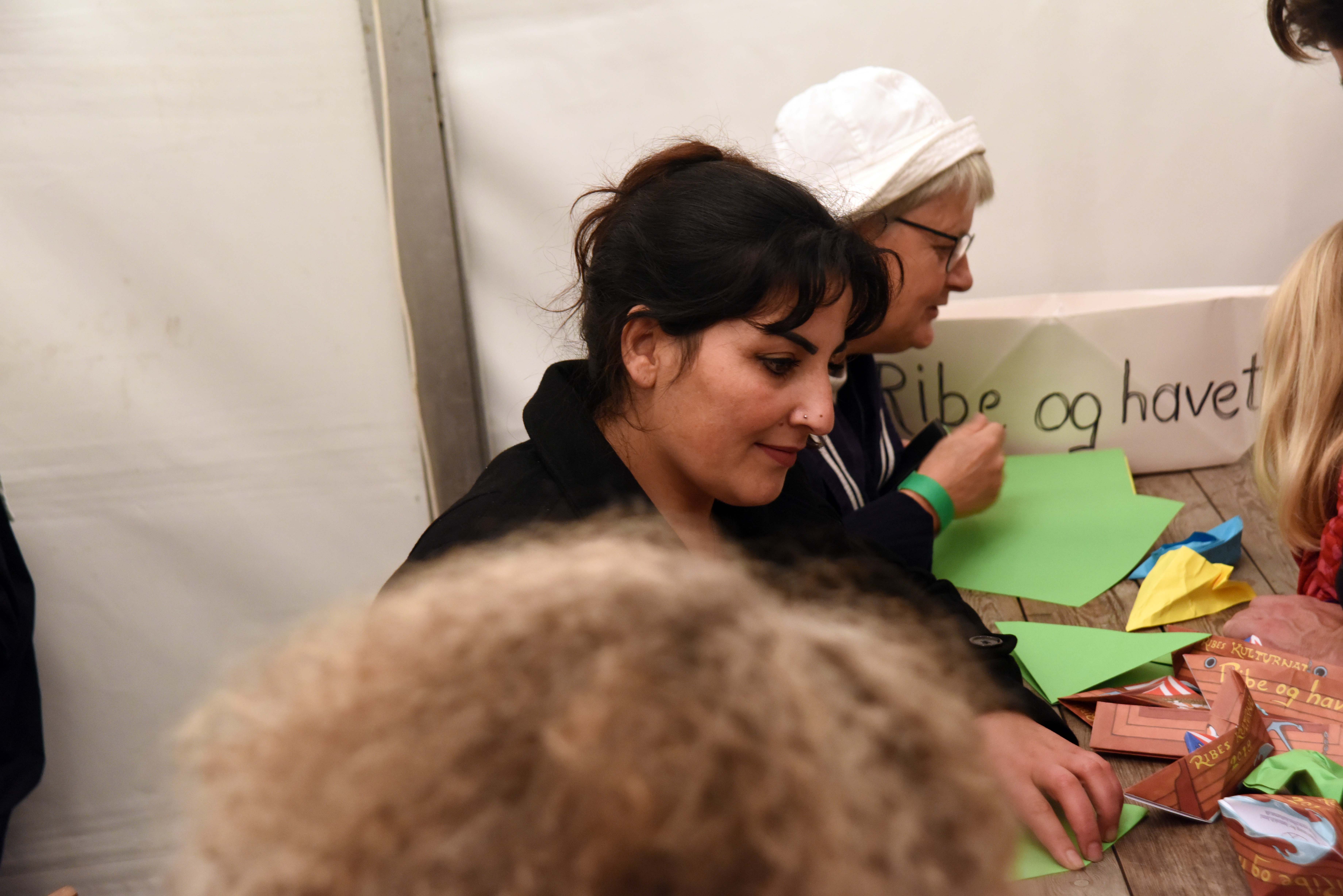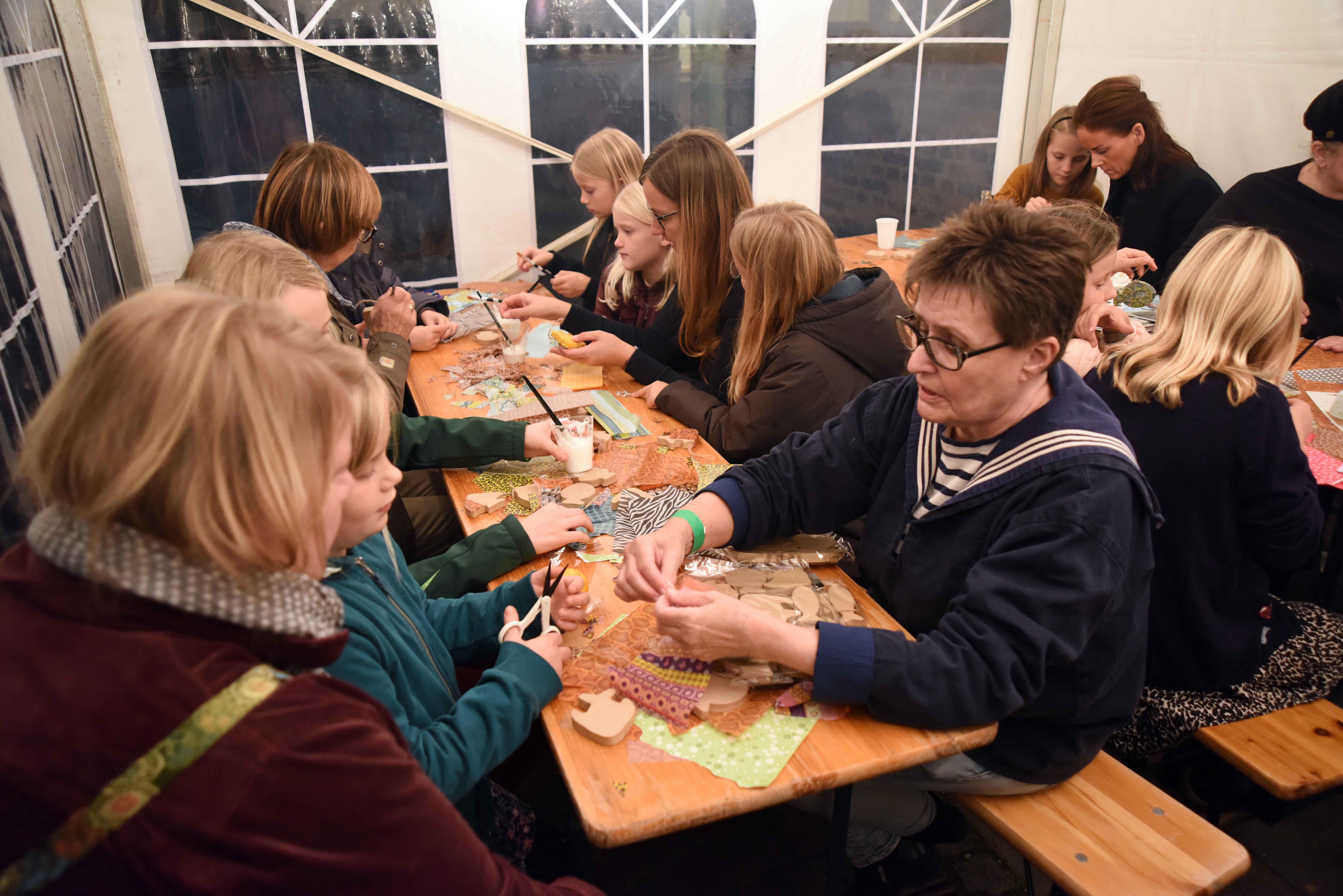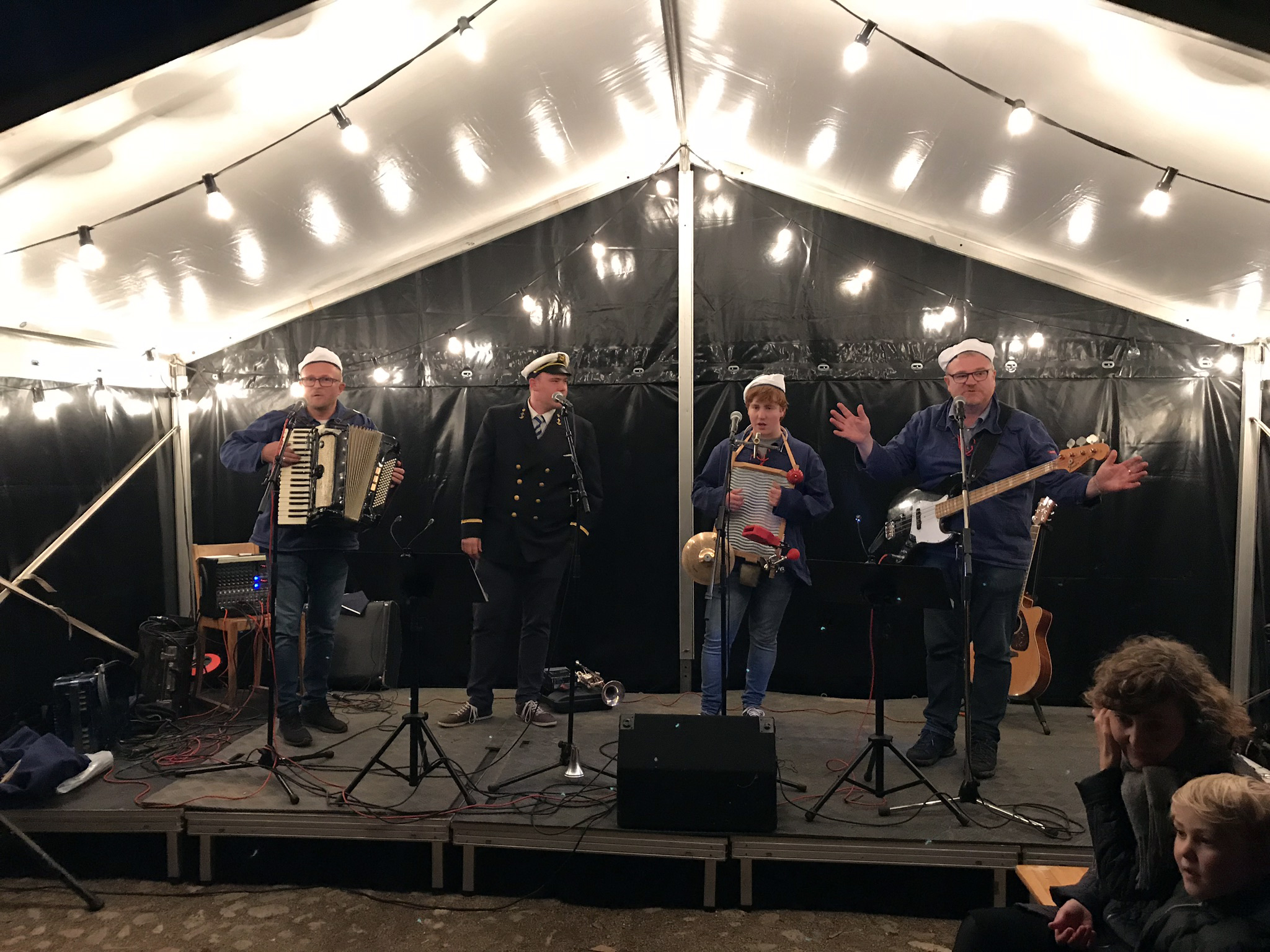 Under tonerne til sømandsmusik kom det gode skib Martha i land, hvor de blev modtaget af Ribes Vægtere og mange folk, der var mødt frem til Kulturnattens åbningsarrangement på Skibbroen. Isvaflen havde ikke mange tomme pladser uden for, denne lune oktoberaften, som trak folk af huse, men arrangementet havde også meget at byde på. De lystige sømand, med kaptajn Verner i forgrunden, gik op til Toldboden – fulgt af de mange mennesker, der havde været med til at modtage dem på havnen i Ribe. Børnene kunne hygge sig i et telt med klippe og klistre ting – og her var Ruth fra butikken Dreamart en god igangsætter. Herlighederne i teltet trak folk til sig i alle aldre, og børnene fik god hjælp af bedsteforældre og forældre. Havde børnene brug for en pause i arbejdet med deres klippe/klistre, kunne de besøge foto Jens i et telt, hvor det var muligt at få taget et billede.