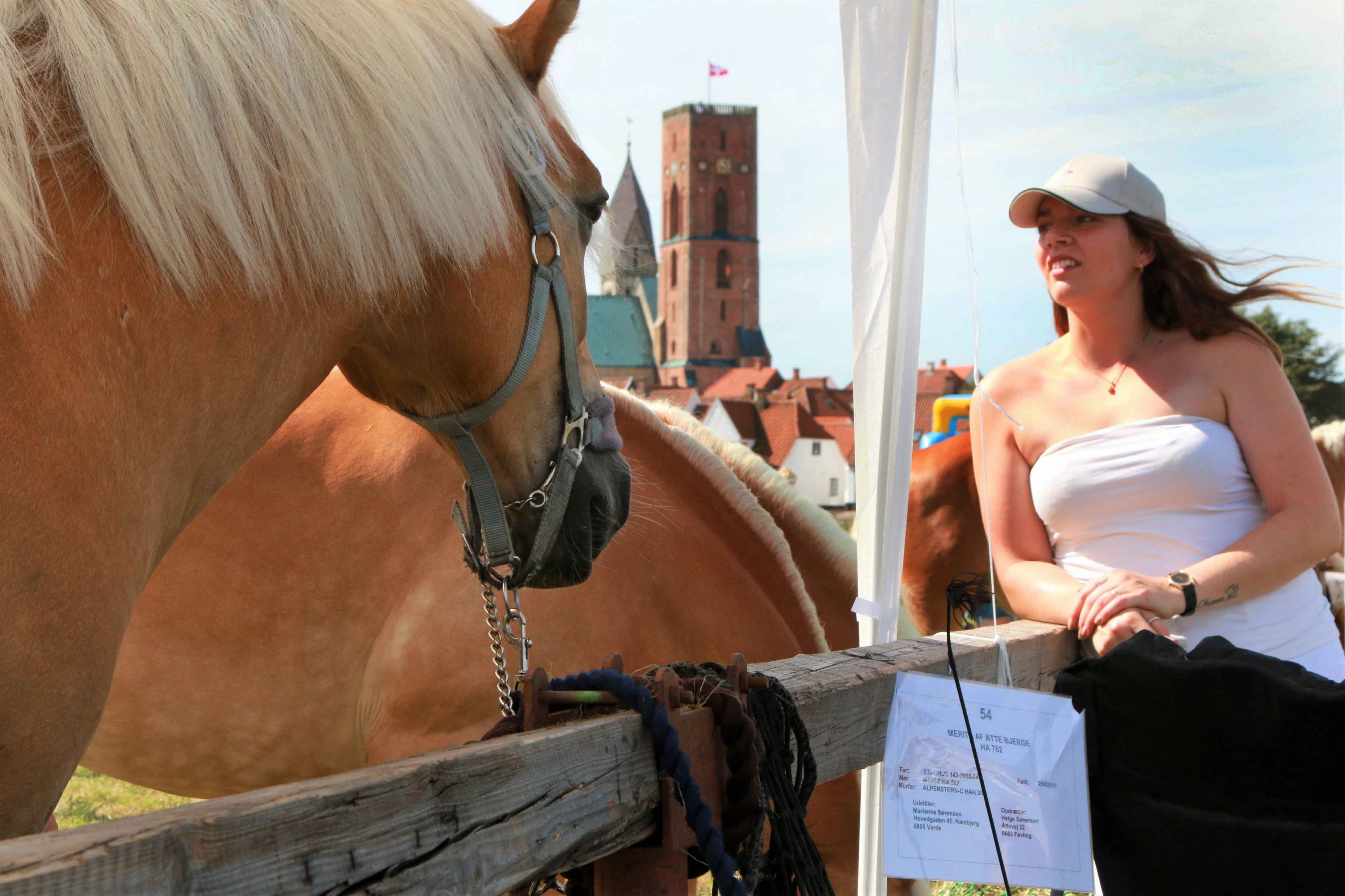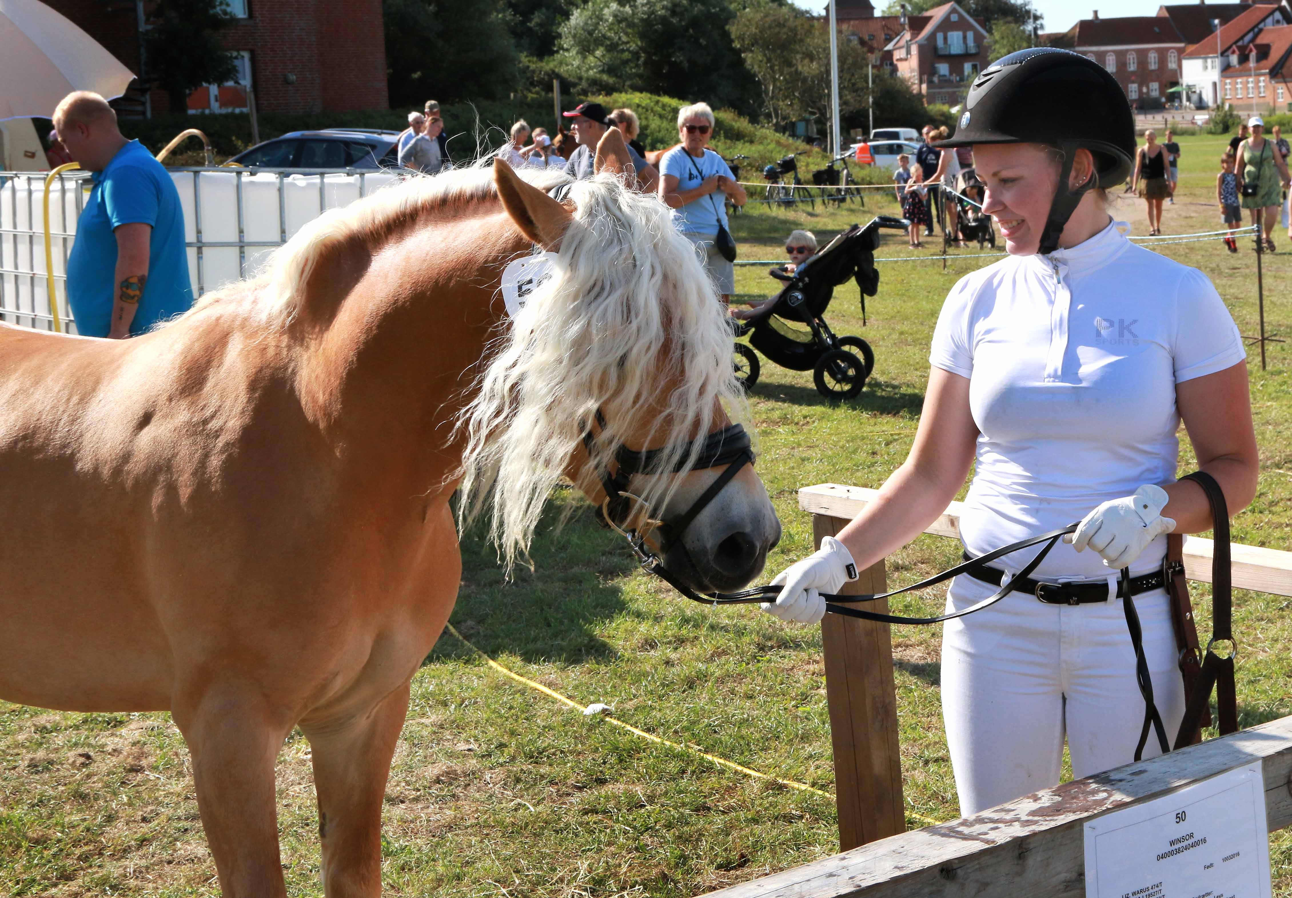 Dorte Horsager Rasmussen fra Rødding havde haflingerhingsten ”Winsor” med – den nød omgivelser og vrinskede fra tid til anden – og påkaldte sig dermed opmærksomhed i ventetiden til præsentationen i ringen foran dommerne.