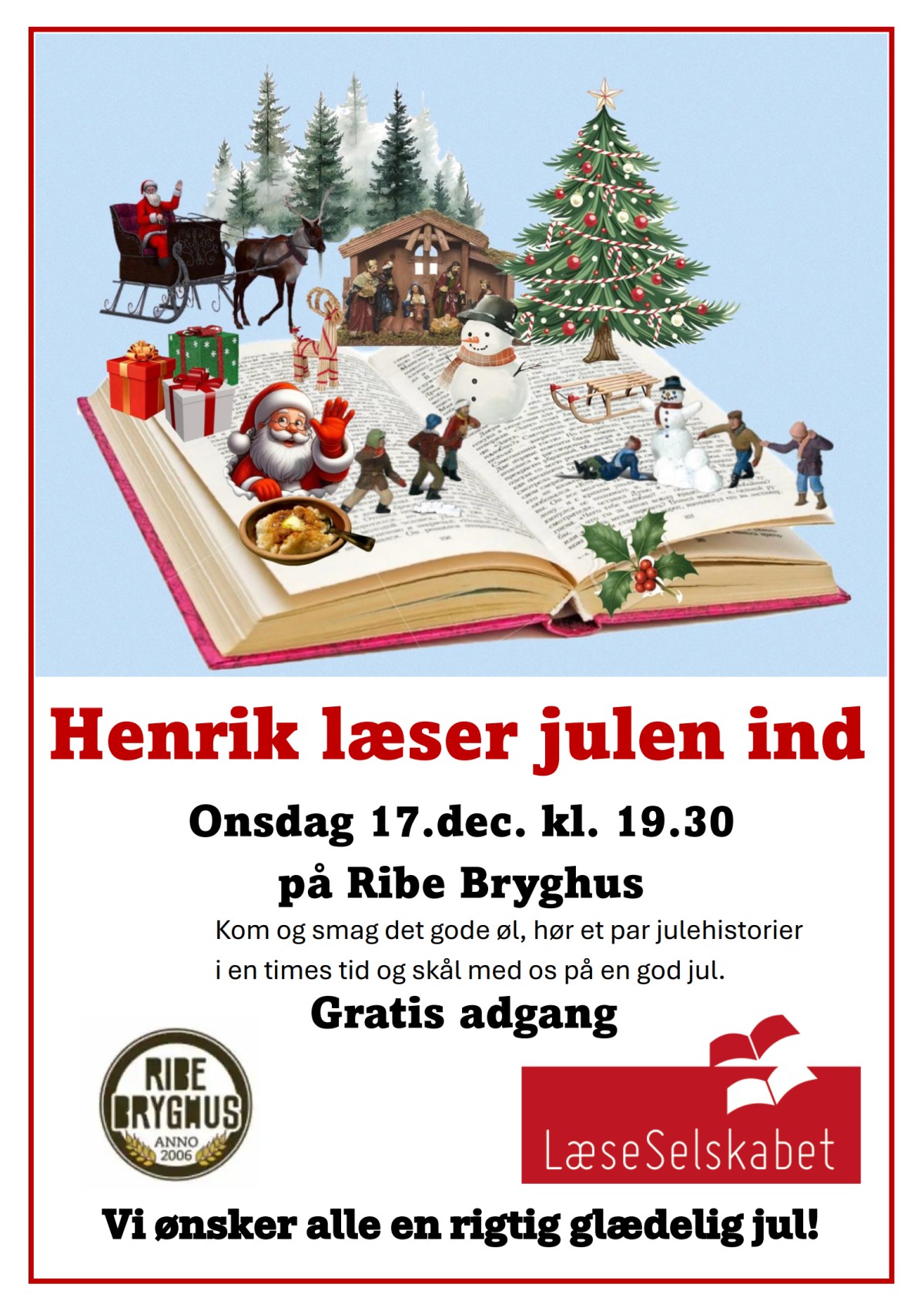 Men inden kalenderen skifter, inviterer LæseSelskabet alle interesserede til at runde året af med arrangementet ”Henrik læser julen ind”. Det finder sted på Ribe Bryghus onsdag den 17. december kl. 19.30, og der er fri entré.