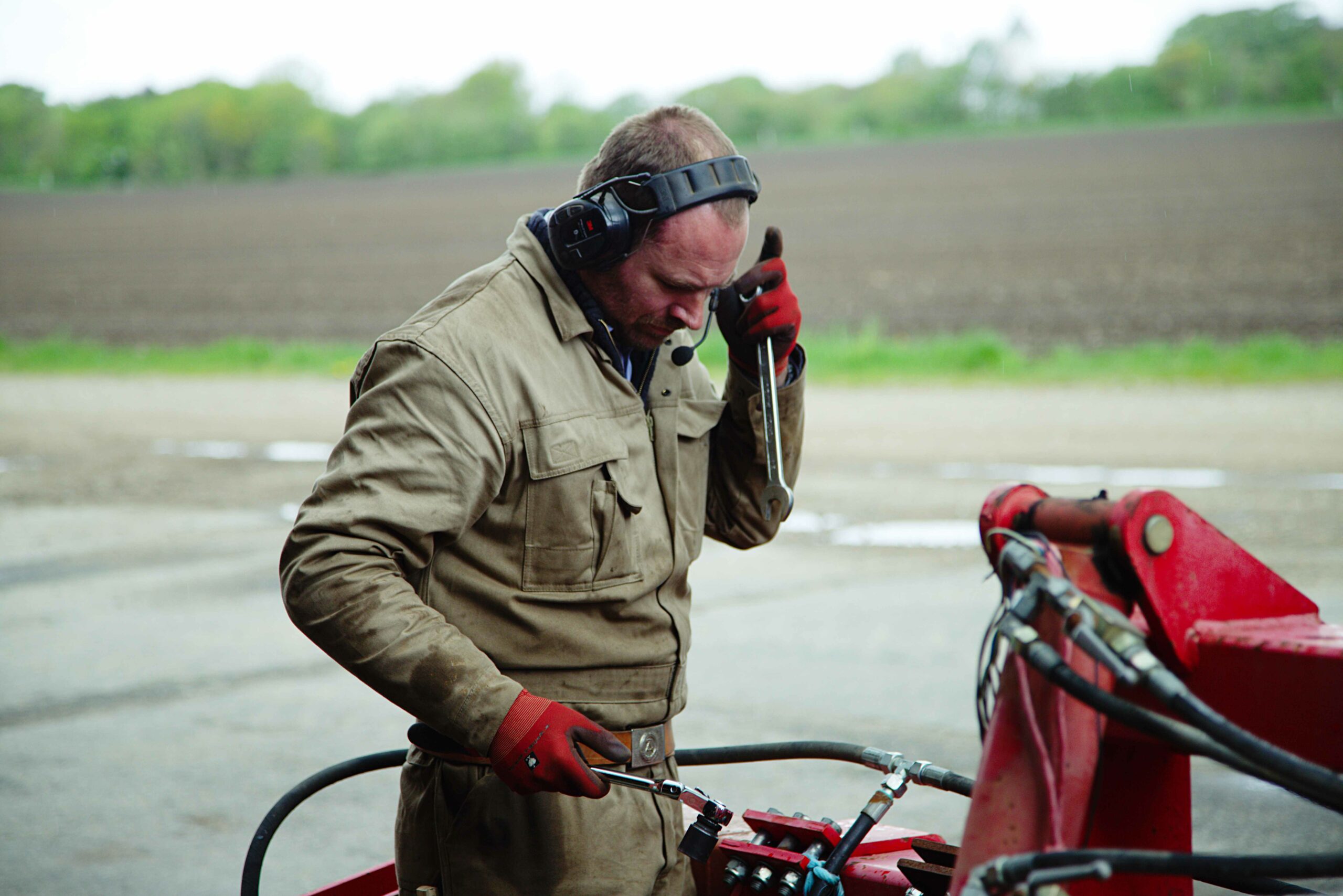 Redskaberne tjekkes og justeres, men der er også plads til en telefonsamtale