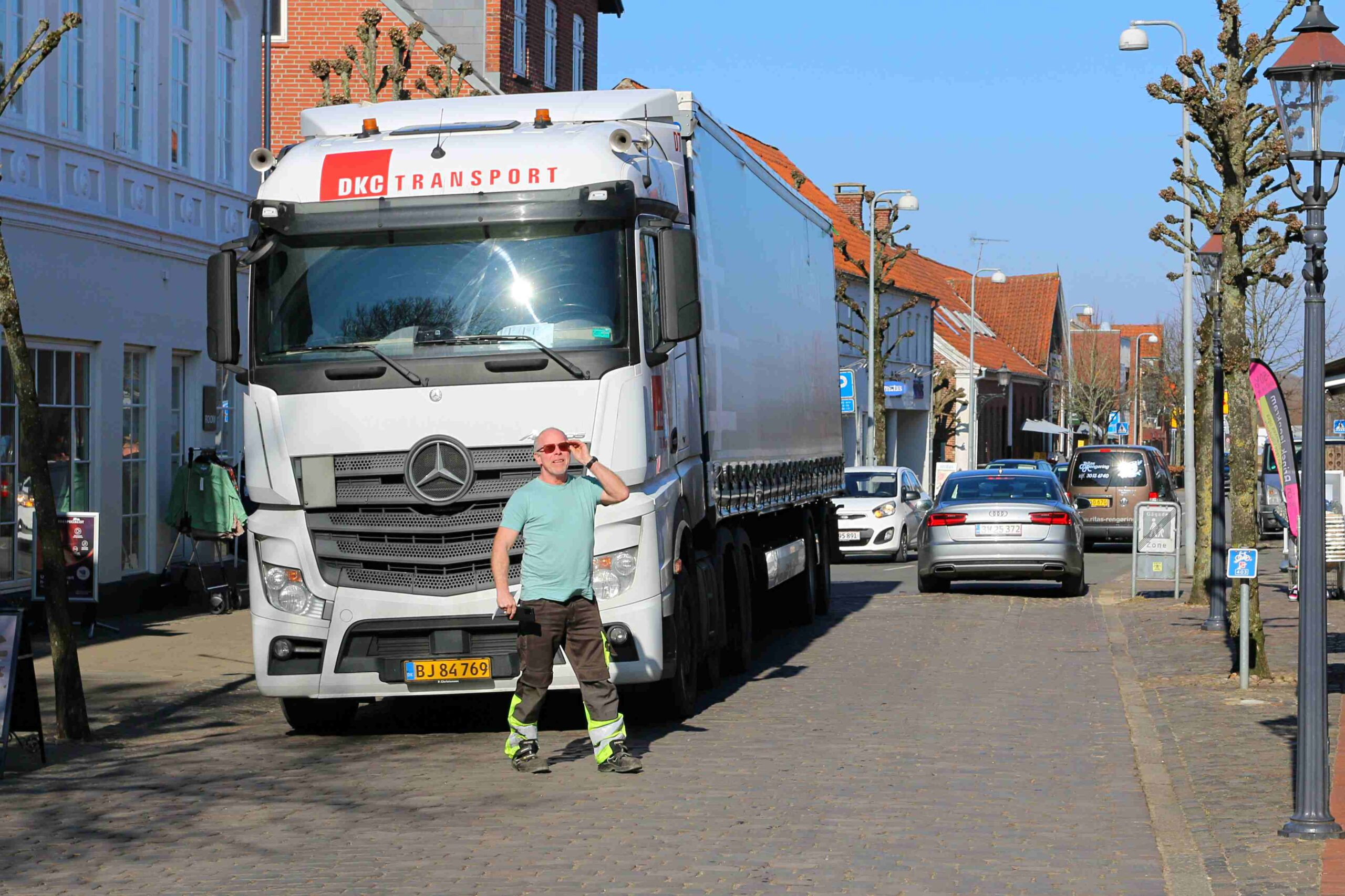 Mens RYK IND RIBE snakkede med chaufføren fra DKC Transport , hvordan han skulle komme videre, viste flere bilister en upassende trafikkultur, men han tog det nu helt pænt: – Sådan er det flere steder, men jeg kan jo ikke bakke mig ud af udfordringerne, så hvordan kommer jeg ud af byen? Min GPS hjælper mig ikke.