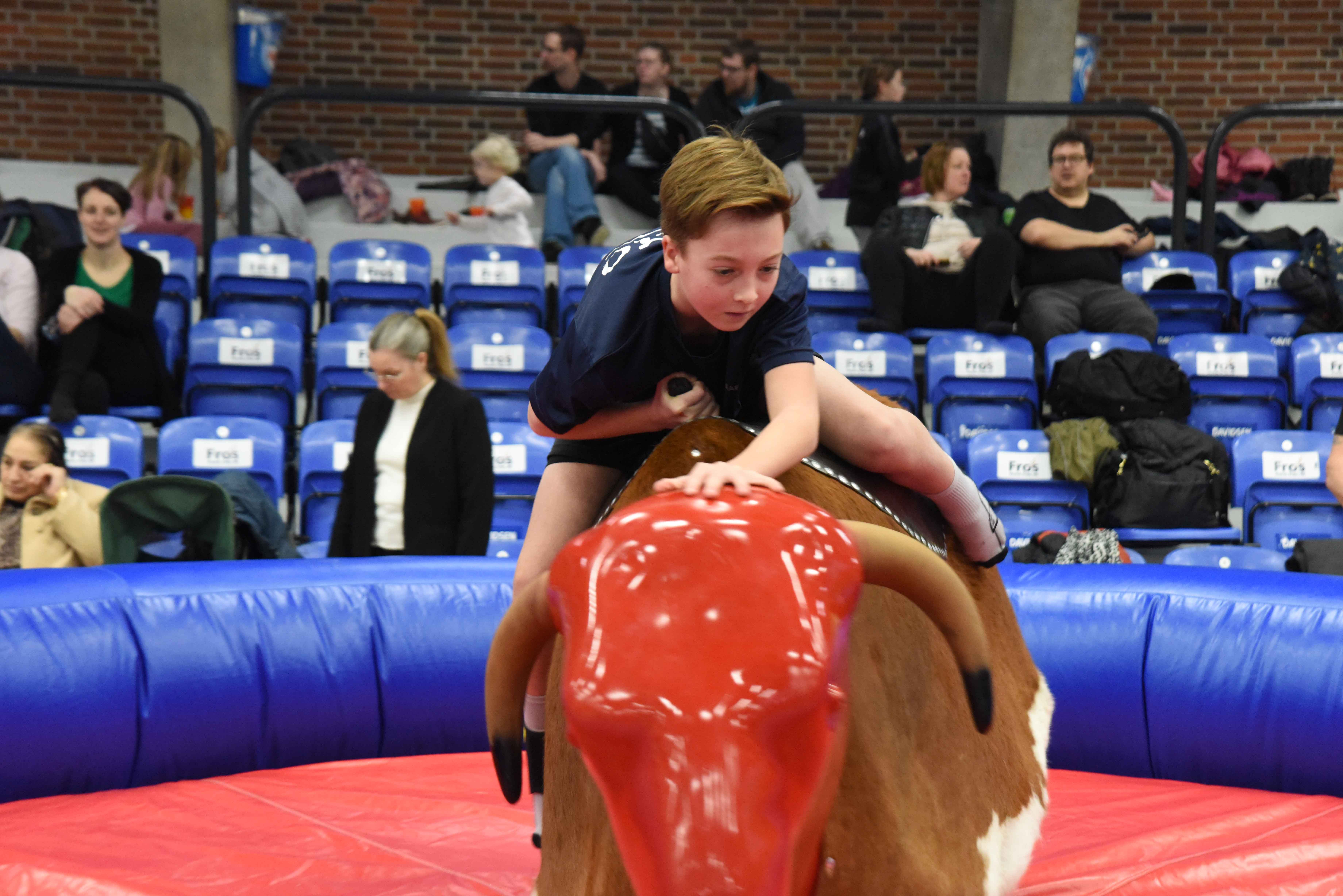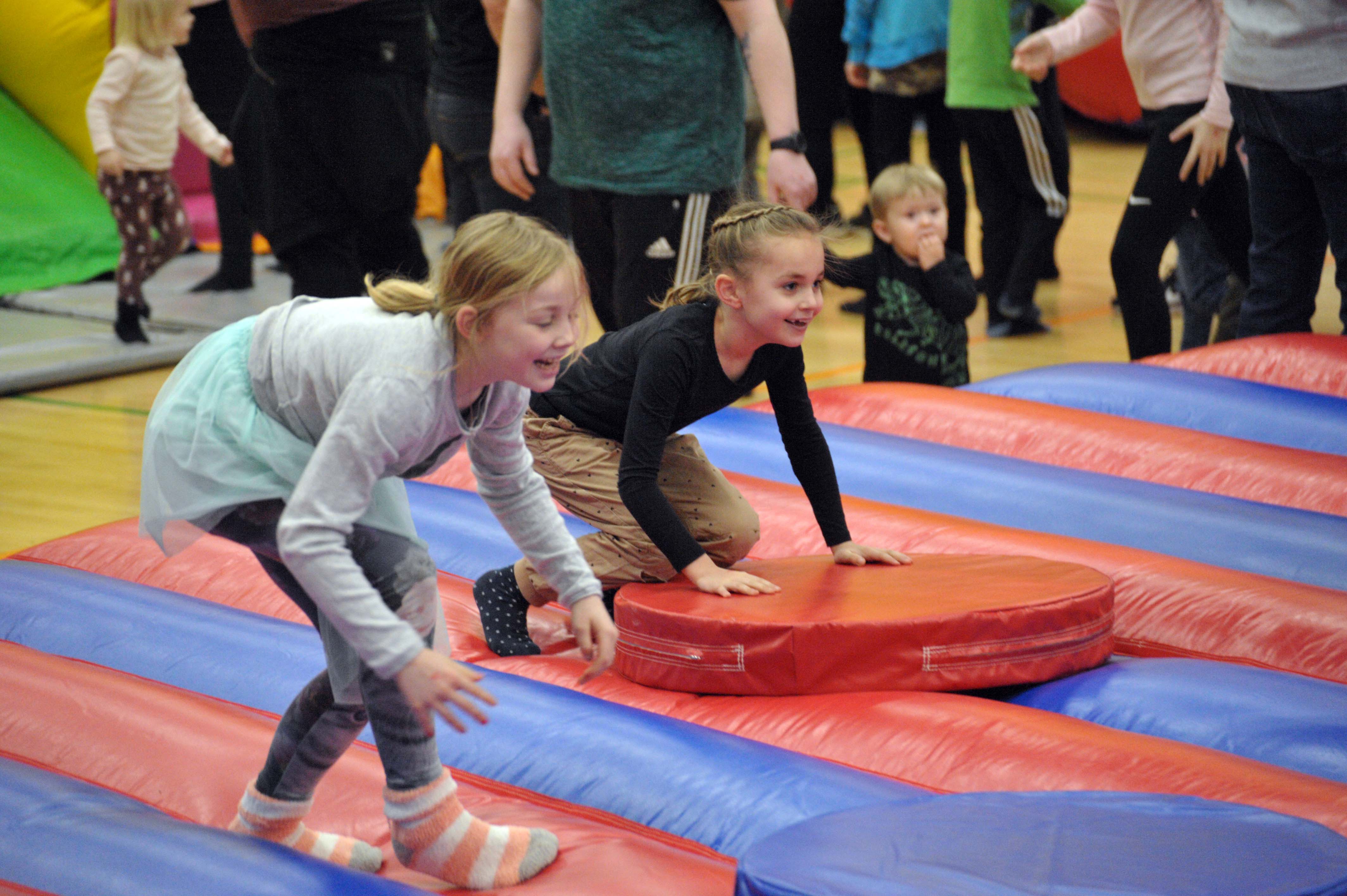 Der var fem forskellige hoppeborge – lidt forskellige i opbygning i forhold til alder, rutsjebaner, forhindringsbane og sumobrydning i oppustelige dragter. En tur i wipeout sweeperen fik smilene frem blandt tilskuerne, når enkelte af børnene ikke lige nåede at dukke sig eller hoppe over. Der var også nogle børn, der lige måtte en tur ud til forældrene eller bedsteforældre for at få lidt trøst, når en af de ”blå arme” lige havde pandet dem ned i kanvassen. At dukke sig og hoppe over de drejende arme krævede lidt overblik, men sjovt så det ud.
