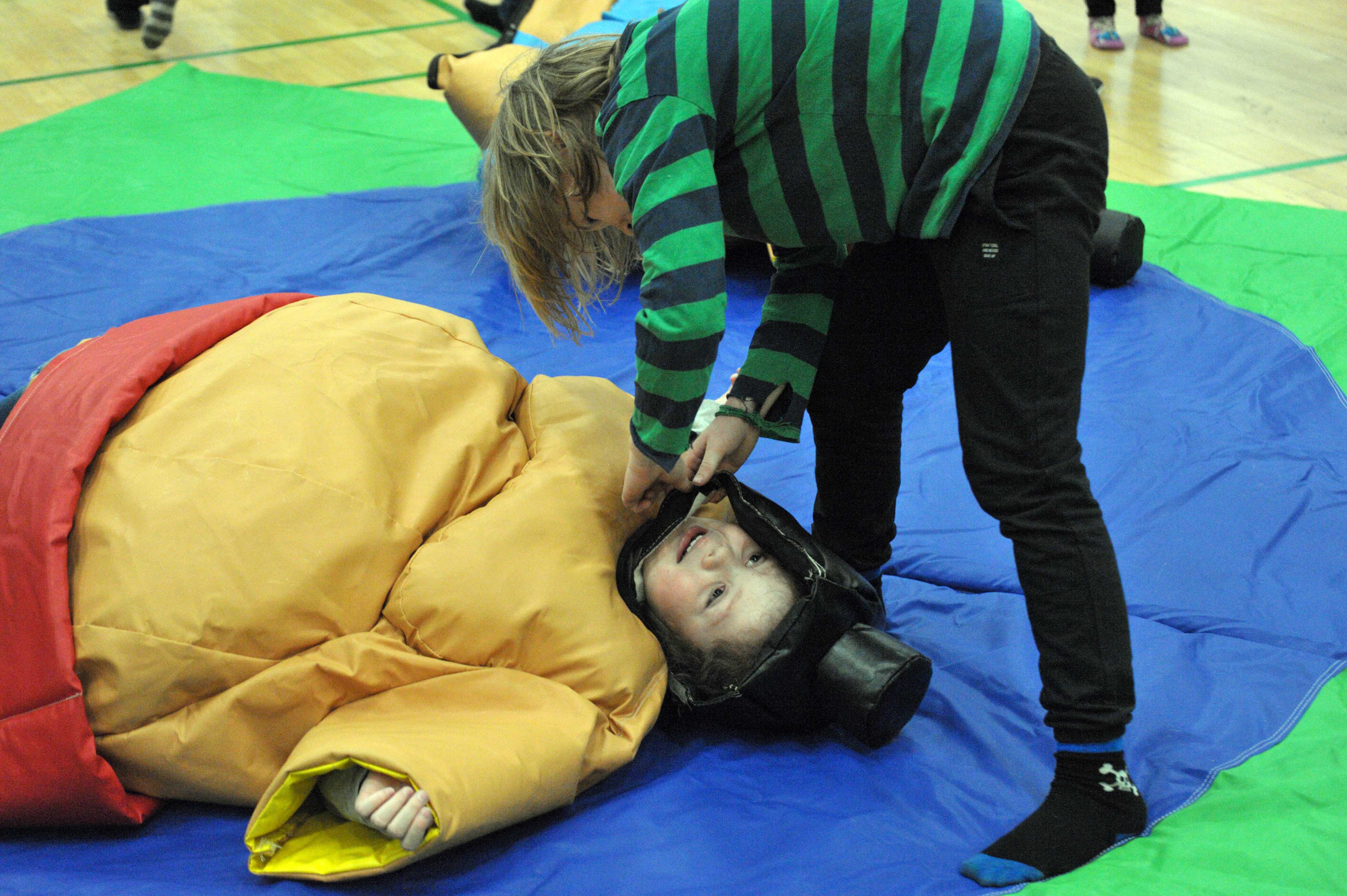 Sumobrydningen var også populær. De oppustelige dragter var varme at have på, men børnene nød at kæmpe mod hinanden og der blev grint meget.