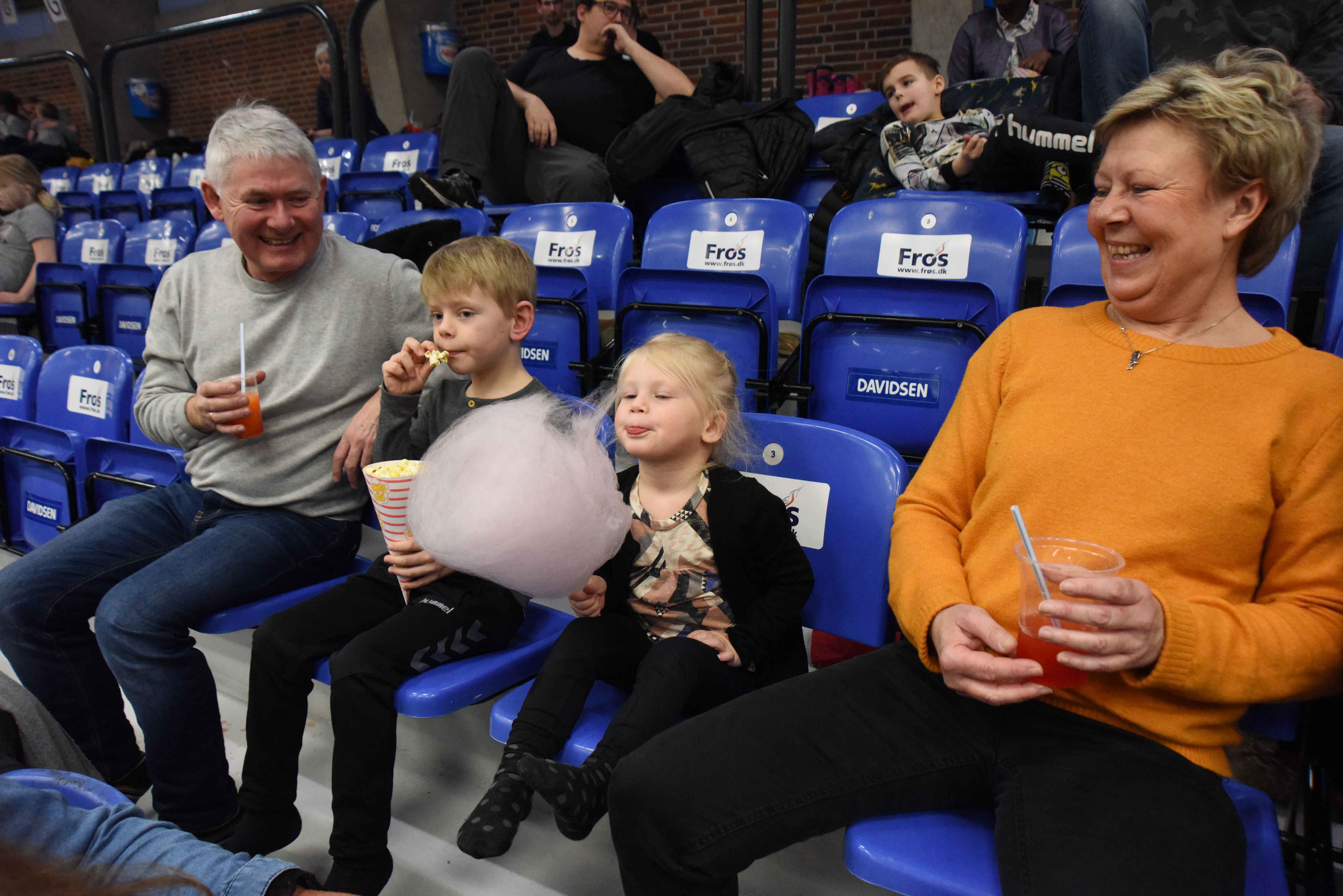 Familien Pedersen havde de to børnebørn Theo og Ellie Vind Pedersen med i Lege -& hoppeland og der skulle nu også være tid til en forfriskning før løjerne gik videre. Et godt arrangement, sagde morfar John.
