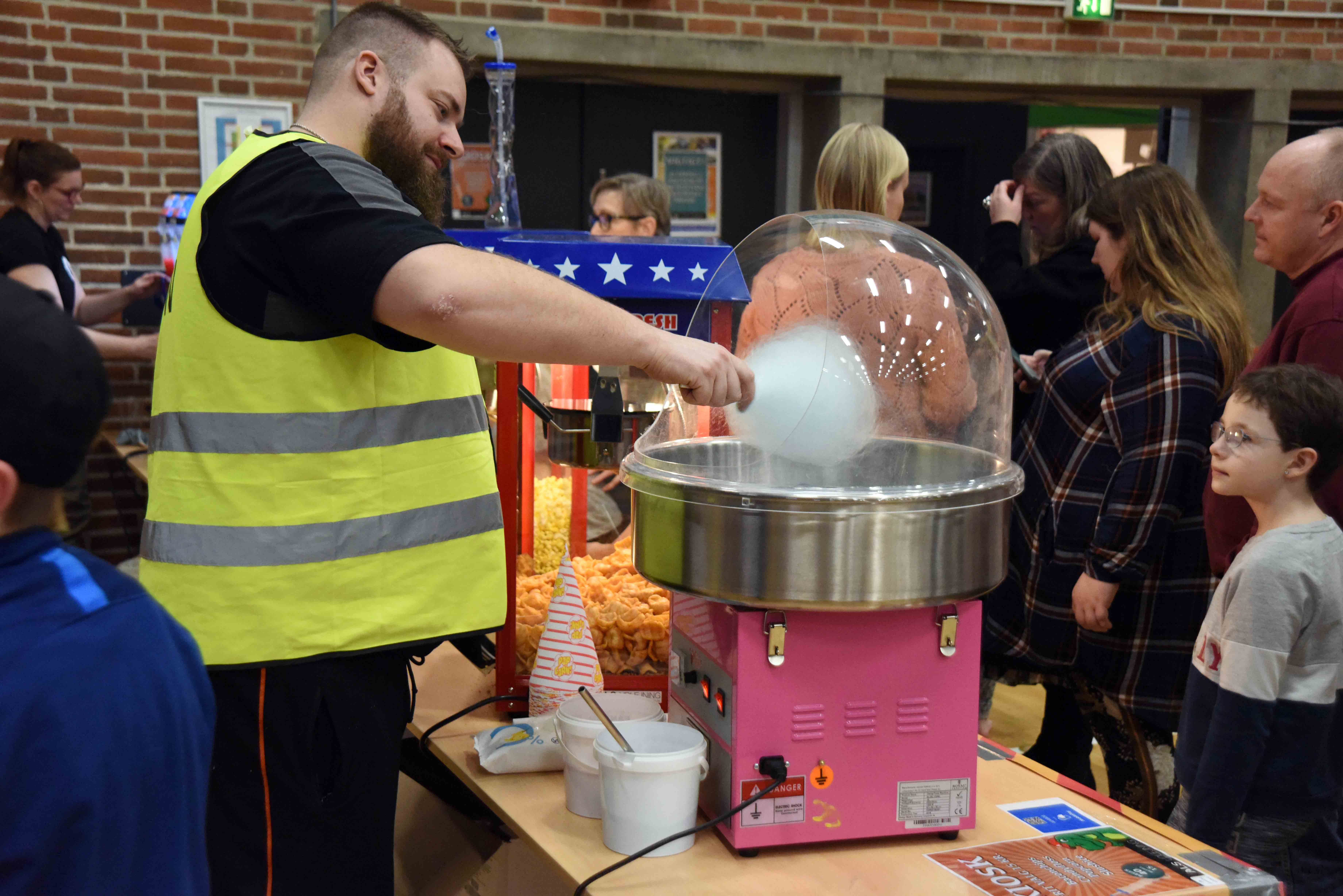Morten har seks medhjælpere med for at få arrangementet til at fungere, men ansvaret er forældrenes og derfor var der også placeret borde og stole mellem legeborgene. Forældrene sad således ikke bare ude ved bordene i forhallen, men blev en del af hele arrangementet.