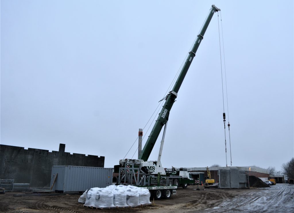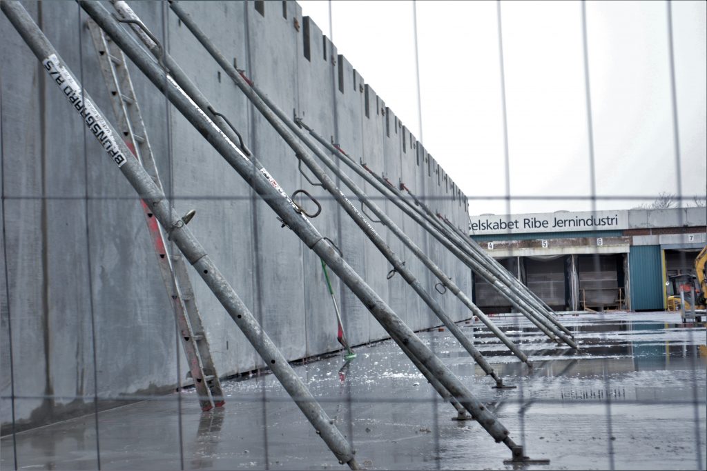 En stor kran fra BMS løftede de store elementer på plads på soklen, og der vil ikke gå mange dage, før man for alvor kan begynde at se konturerne af den nye forretning. Dermed er det første fysiske skridt taget til det, der skal blive et helt nyt bykvarter i gamle Ribe.