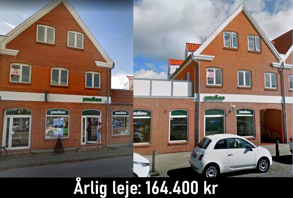 Ejendommen er også til salg for 3.150.000 kr – og står beskrevet således: ”Kan opdeles med 140 m2 erhverv og 123 m2 bolig med en grundstørrelse på 224 m2.