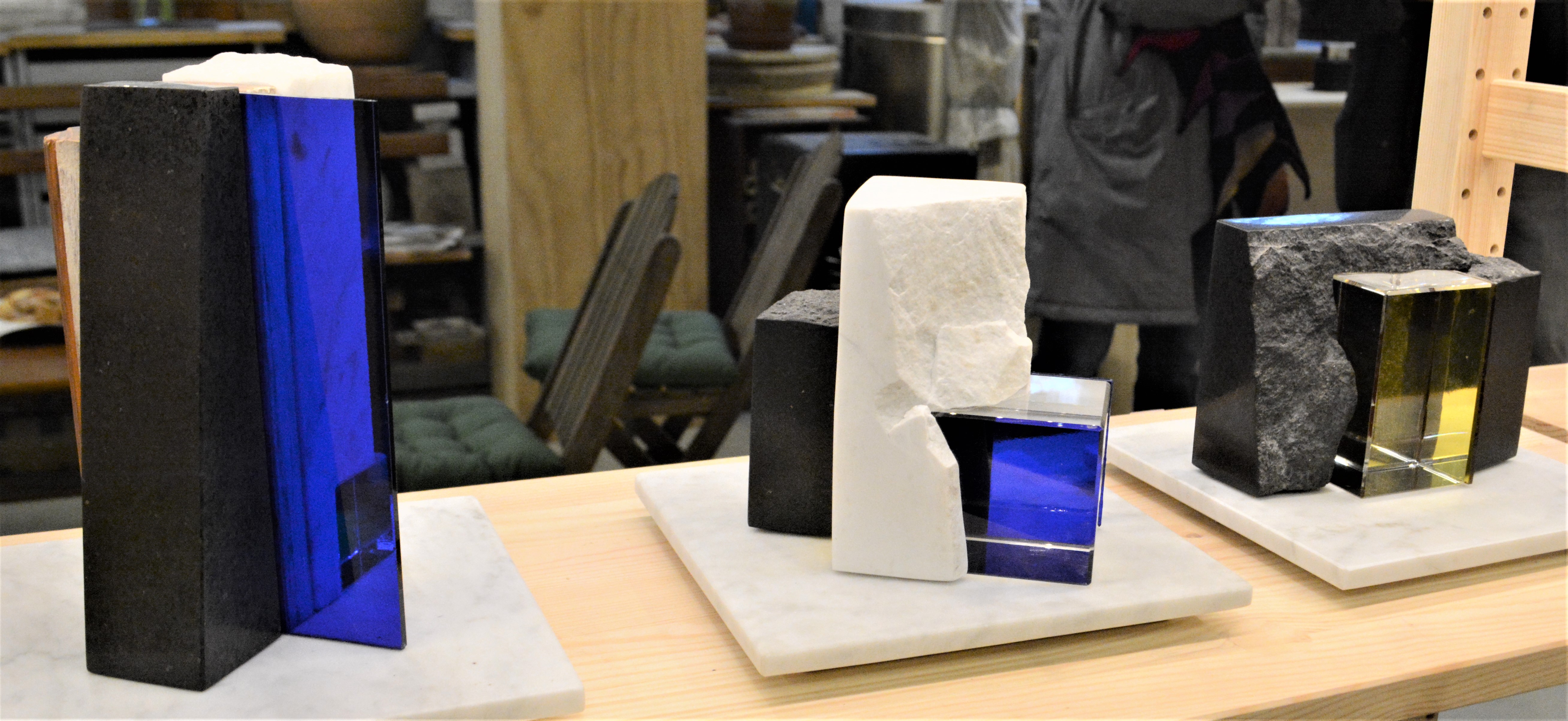Hendes sans for former, farver og materialer fornægter sig ikke. Der er en fantastisk harmoni og ro over hendes skulpturer, selv om de er lavet i rustikke materialer.