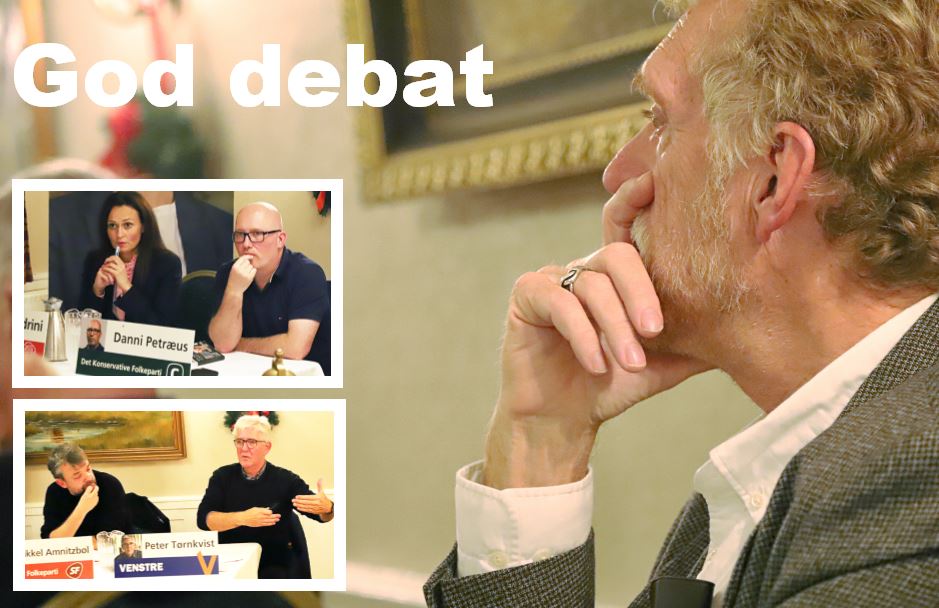Rotary Ribe havde på forhånd fremsendt 6 temaer, som de tre politikere: Karen Sandrini (A), Danni Petræus (C), Mikkel Ammitzbøll (F) og Peder Tørnqvist (V) kunne tage udgangspunkt i under deres 10 minutters oplæg. Og emnerne blev fremlagt under fri fortolkning med en skarp tidsstyring af Willi Weber, som havde tjansen som ordstyrer: