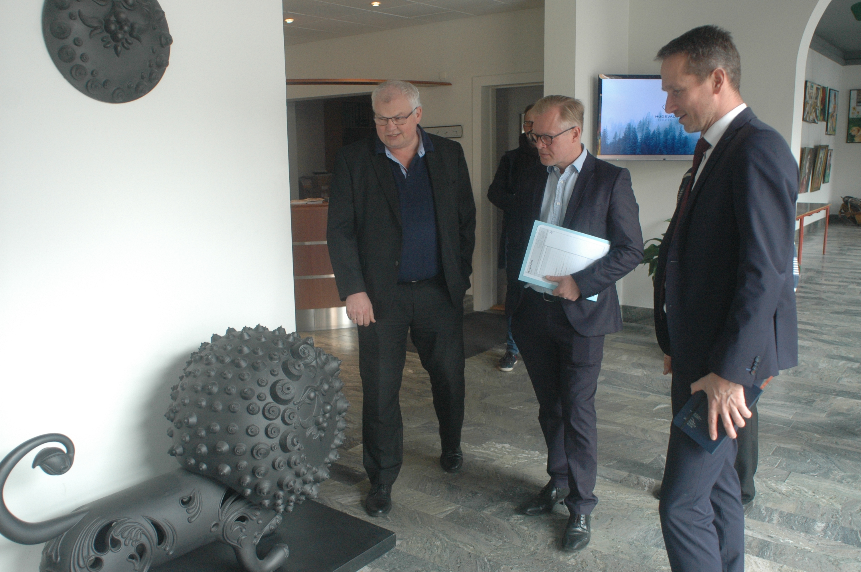 Direktør Michael Boel Olesen havde forleden mulighed for at vise løven frem, da finansminister Kr. Jensen og folketingsmedlem Carl Holst besøgte virksomheden. Her kunne direktøren også præsentere den første kakkelovn i støbejern fremstillet i Ribe.