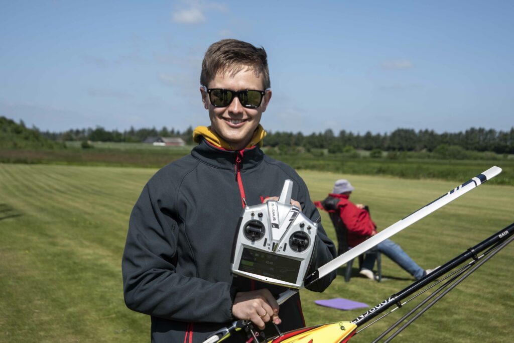 Den 24 årige Rasmus Jakobsen fra Egeskov Modelflyveklub har tidligere vist sine færdigheder ved opvisninger. Rasmus har deltaget i mange turneringer og opnået en fin placering som nummer fem ved verdensmesterskabet.