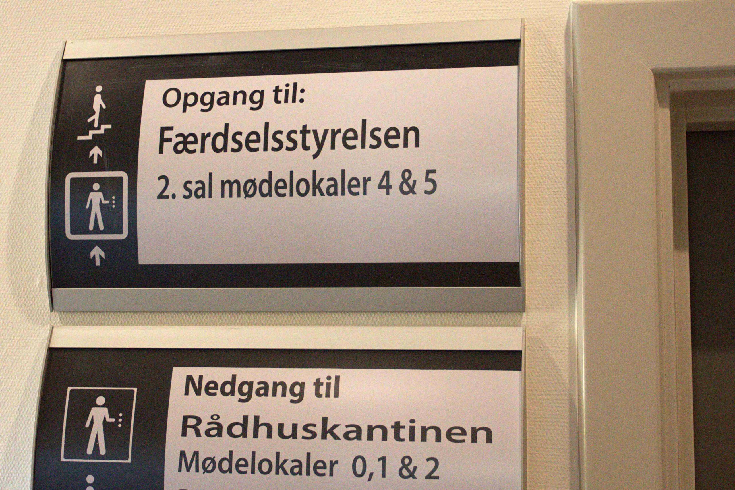 Ny skiltning fortæller indenfor, hvor Færdselsstyrelsen holder til. – Vi er ganske få på arbejde her i efterårsferien, fortalte to unge mennesker, som var i færd med at indrette deres kontorer. Allerede nu kan de klart fornemme forskellen på indretningen af den gamle røde bygning med små lokaler og de helt andre vilkår i lokalerne, hvor Dagtilbud havde sin administration ud på Sct. Jørgens Vej. – Men det har hver sin charme, lød budskabet fra den unge mand, som er uddannet på Aarhus Universitet.