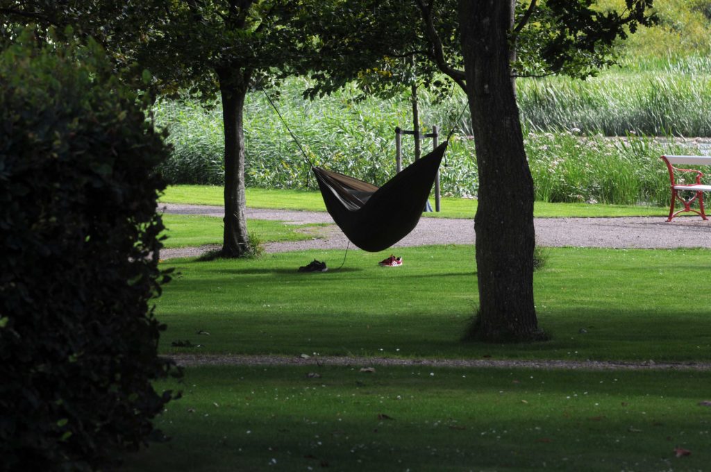 Jeg ønskede dem en fortsat god ferie, og de fortrak sig igen ned i hængekøjen, en hængekøjetype, der går under betegnelsen bananhængekøje. Folk, som kender mig, ved, at alt hvad der har med bananer at gøre, er en ulyksalighed, men hyggeligt så det ud. Det var så den weekend.
