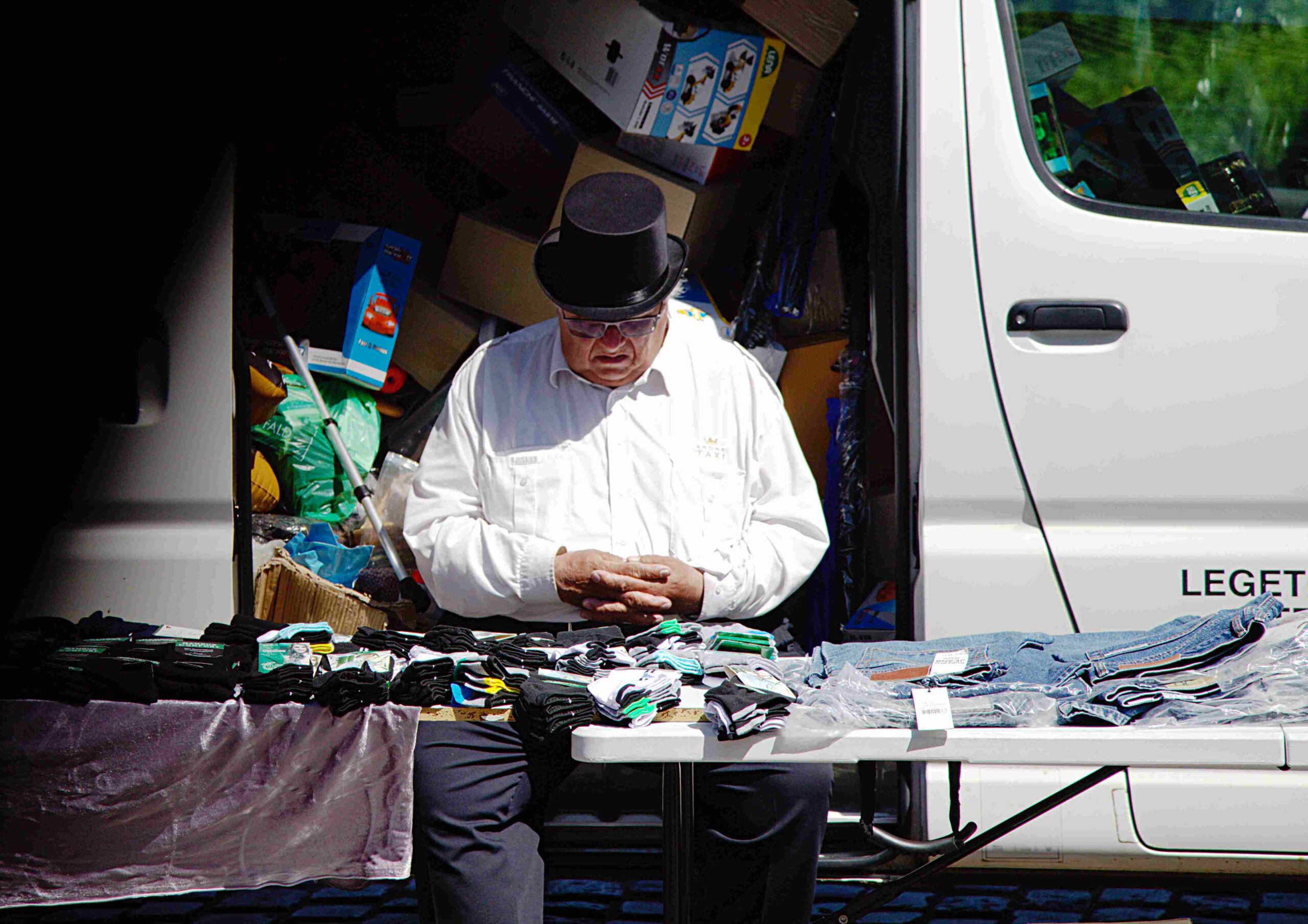 Kunderne fik nogle gode varer – og så var der masser af tid til at vende verdenssituationen. Men turisterne manglende. Om det var dem, at den handlende iført tophat til dagen havde med sin bøn – eller han blot tog sig en hurtig middagslur – melder historien ikke noget om.
