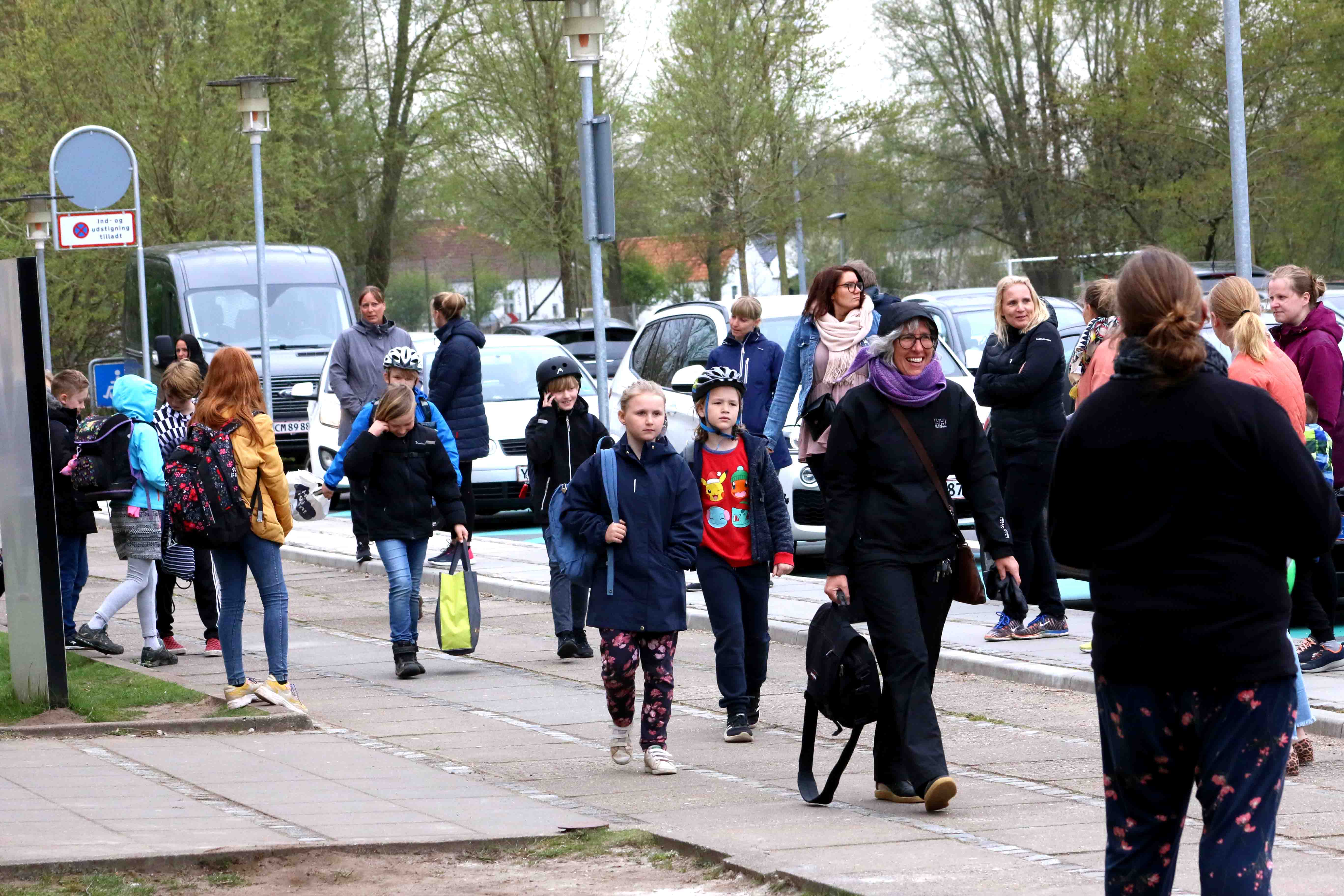 Normalt kan børn hentes i ”Kys og Kør”-zonen, men denne dag var der for trangt – og kun kunne benytte denne gode form. Enkelte havde endog taget cyklen og valgt en placering på højere plateau.