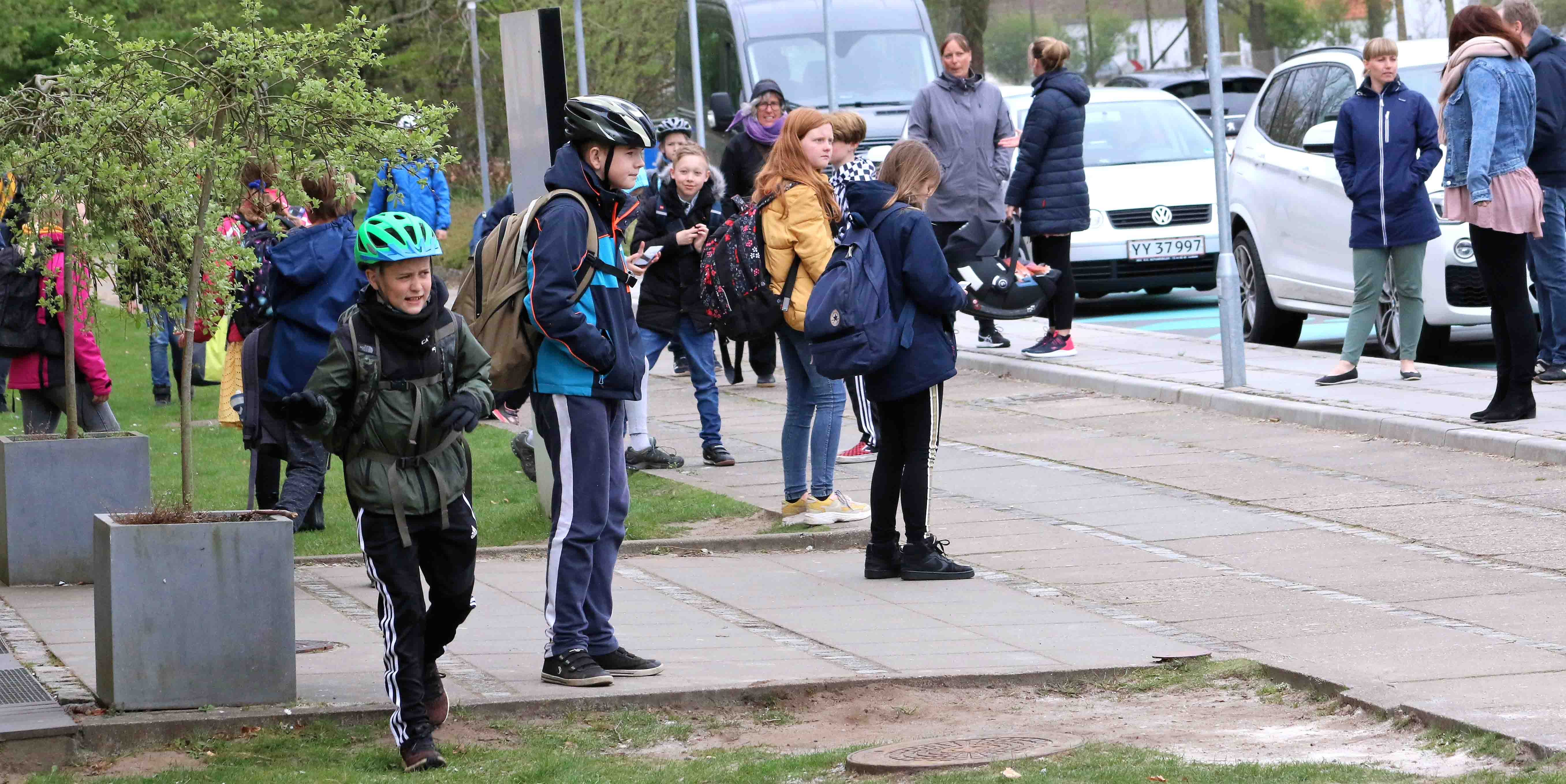 Klokken nærmer sig 12 – parkeringspladsen foran Vittenbergskolen fyldes langsomt op med biler. Forældre, der er hjemmegående – nogle måske grundet Coronakrisen – er kommet for at hente nogle af de yngste børn, hvis skoledag slutter ved middagstid.